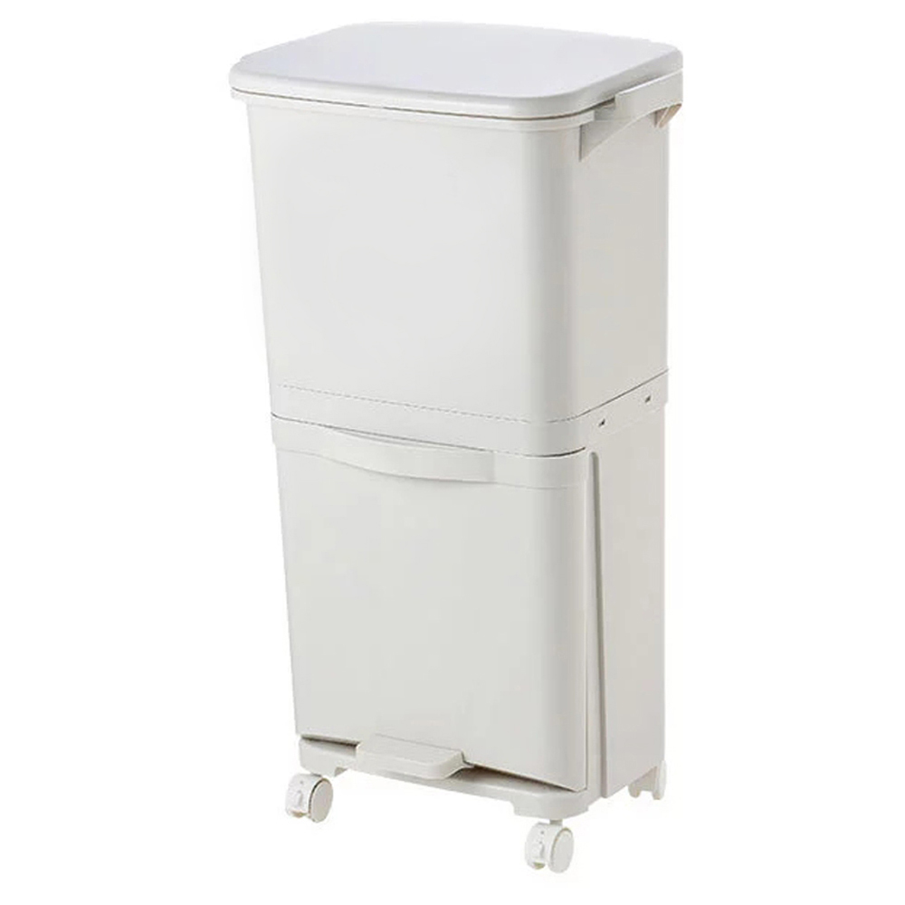 Effortlessly manage your waste with the Living And Home White 2 Compartment Plastic Pedal Recycling Waste Bin 38L. With its large capacity, this bin provides ample space to keep all your waste in one neat place. The stylish design adds a special charm to any bathroom, creating a sense of comfort and aesthetics. Designed for durability, the bin features sturdy construction with a strong load-bearing capacity. Its four-caster design ensures easy mobility and manoeuvrability, allowing you to move the bin wherever needed. The rib-strengthened rim resists crushing, while the step design prevents jamming when nested. The bin includes a convenient drawer for storing garbage bags or other small items, adding to its functionality. Perfect for various environments, from commercial businesses and restaurants to your home kitchen, garage, or bathroom, this lightweight and portable bin is a practical addition to any household. Its high-quality materials ensure waterproof and easy cleaning properties, maintaining a hygienic and pleasant environment. Enjoy a creative and fashionable solution for waste management with this bin that has clear classification with two large bins and one of them has two compartments. Size: 38L.