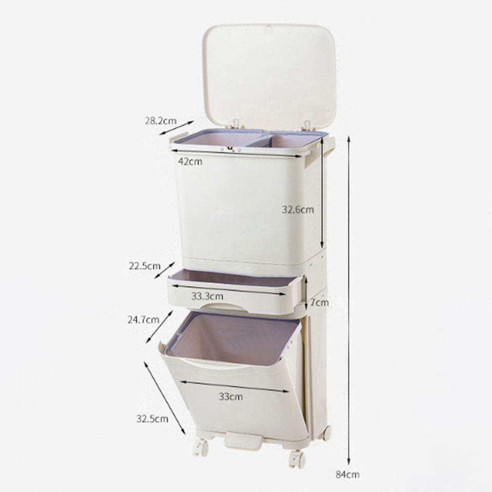 Effortlessly manage your waste with the Living and Home 3-Tier Rubbish Dustbin Recycling Bin. With its large capacity, this bin provides ample space to keep all your waste in one neat place. The stylish design adds a special charm to any bathroom, creating a sense of comfort and aesthetics. Designed for durability, the bin features sturdy construction with a strong load-bearing capacity. Its four-castor wheel design ensures easy mobility and manoeuvrability, allowing you to move the bin wherever needed. The rib-strengthened rim resists crushing, while the step design prevents jamming when nested. The bin includes a convenient drawer for storing garbage bags or other small items, adding to its functionality. Perfect for various environments, from commercial businesses and restaurants to your home kitchen, garage, or bathroom, this lightweight and portable bin is a practical addition to any household. Its high-quality materials ensure waterproof and easy cleaning properties, maintaining a hygienic and pleasant environment. Enjoy a creative and fashionable solution for waste management with this bin. Size: 42L.