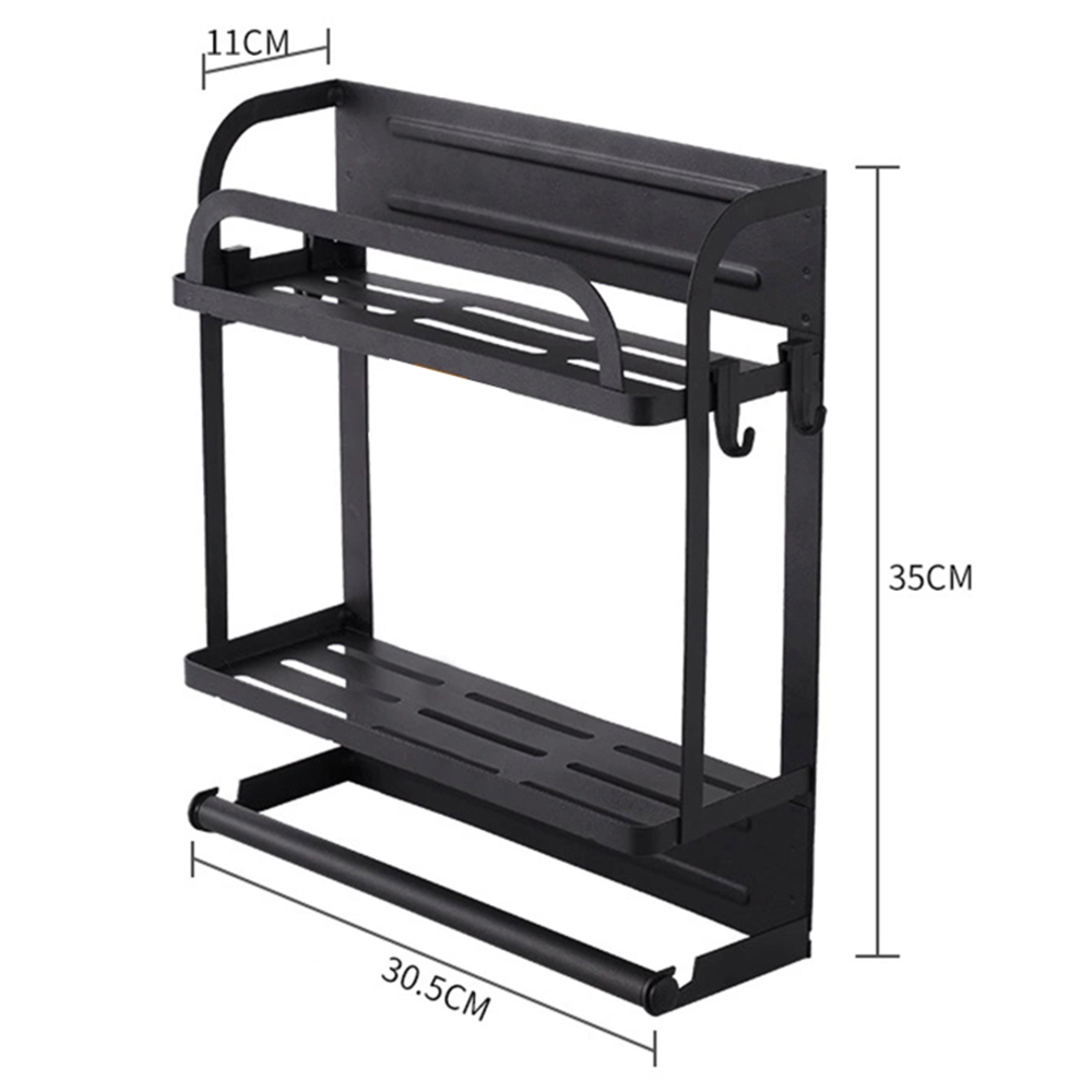 Living and Home 2-Tier Black Metal Magnetic Floating Shelf for Fridges