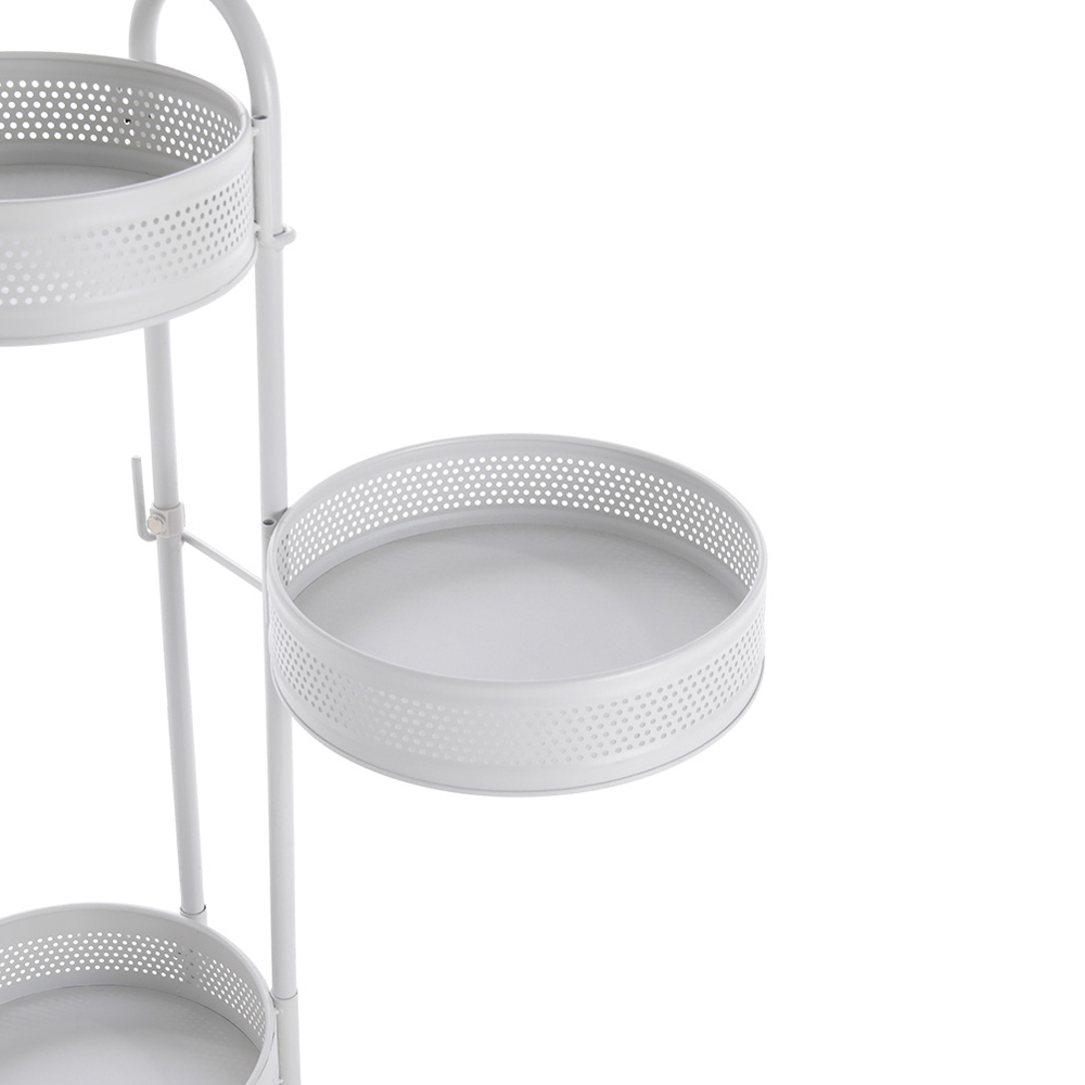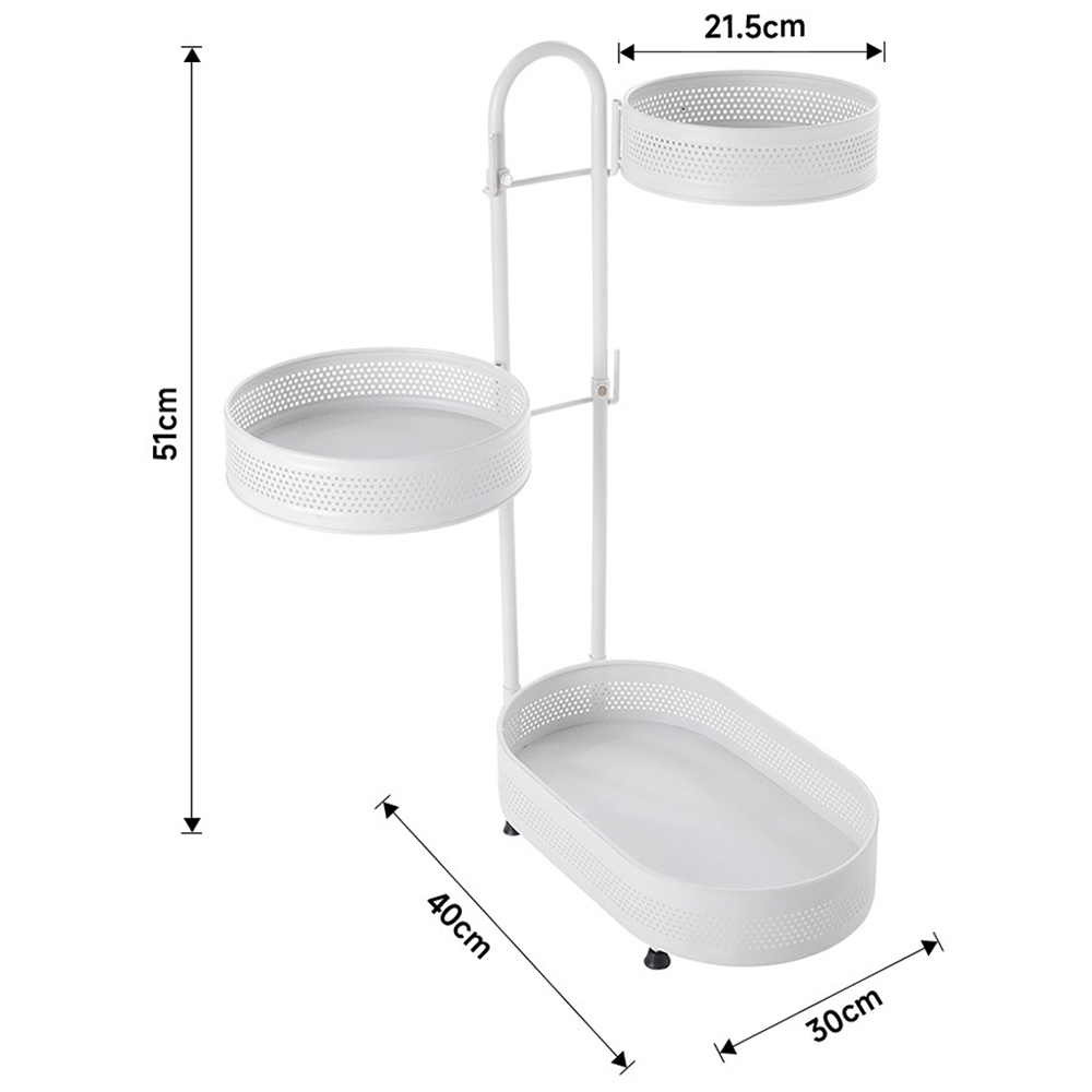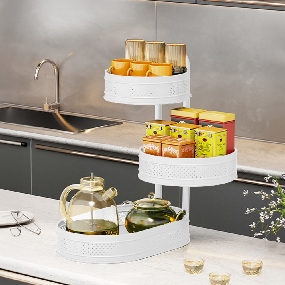 This rotating spice rack features three tiers of baskets, with a sturdy metal frame and non-slip feet to keep your items safe and secure. The top basket is designed to rotate smoothly, allowing you to easily access your spices and other items without having to move everything around. This storage rack is great for saving space on your countertop. Plus, its stylish design adds a touch of elegance to your kitchen decor.