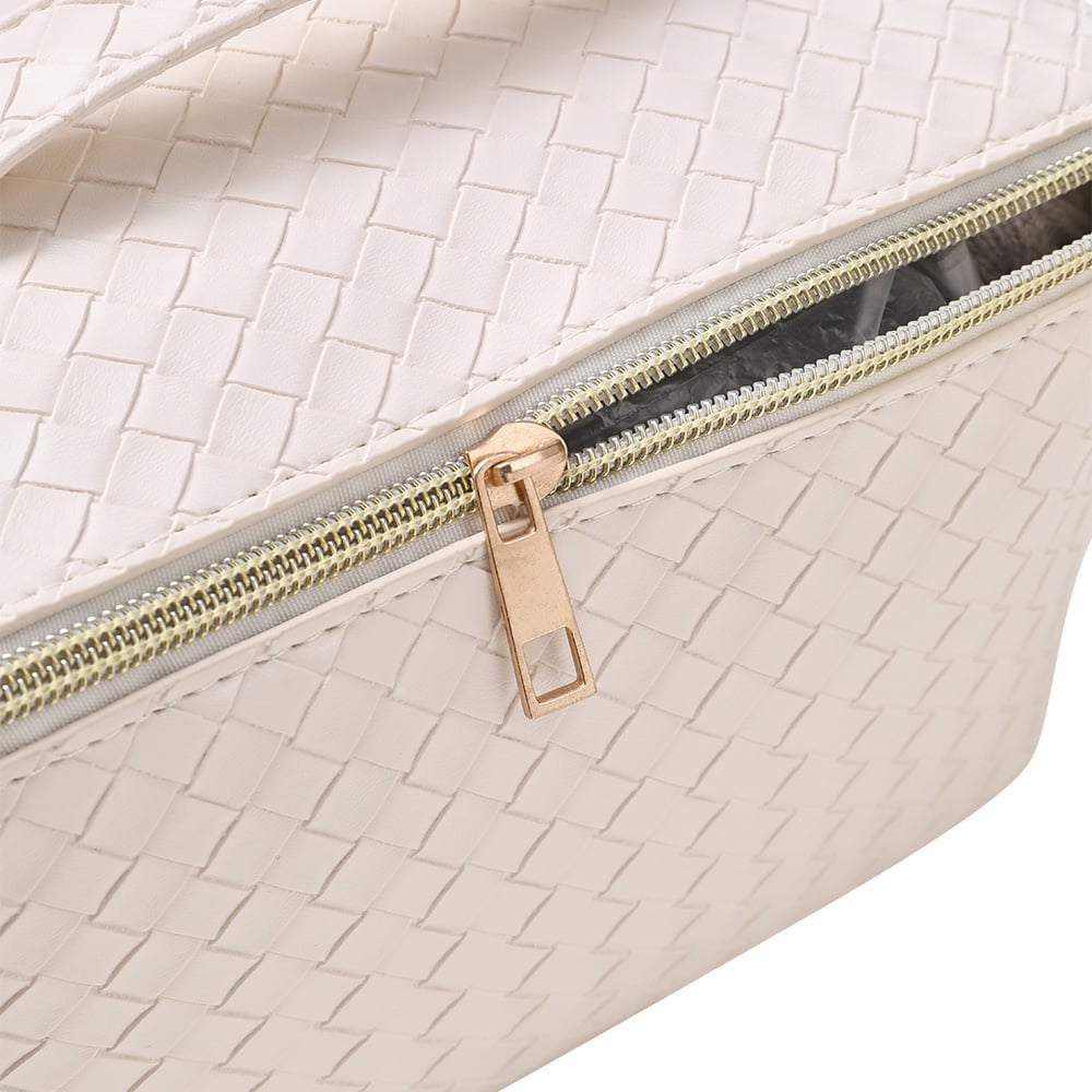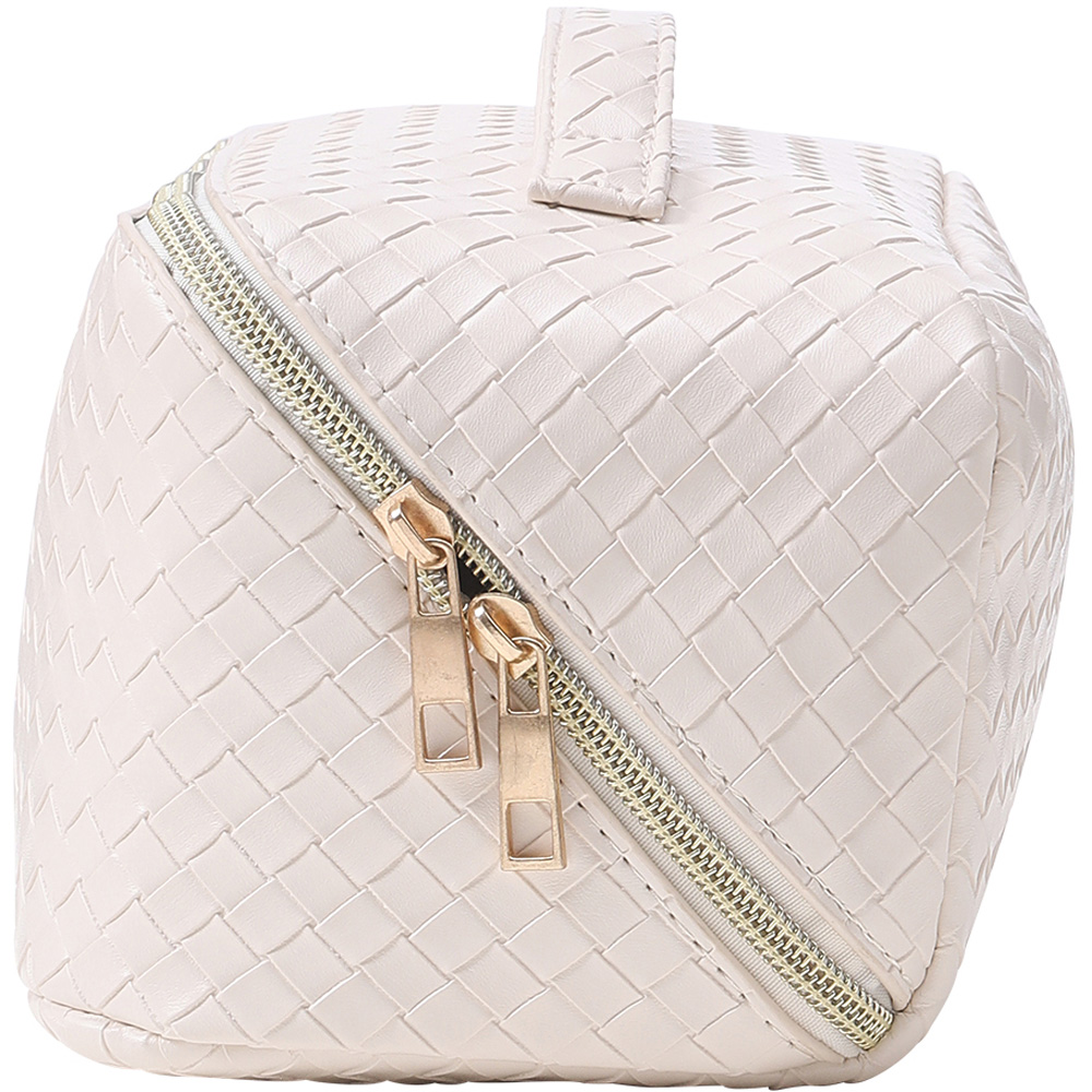 This makeup bag boasts a sophisticated leather exterior and is designed to hold your basic makeup essentials, making it perfect for travel to your favourite destinations. With a special zipper design, it allows the bag to open wide, revealing pockets that unfold for easy visibility and access to your cosmetics, ensuring convenient storage and use. It has two roomy compartments that are great for separating different supplies, ensuring your essentials are organised and easy to reach.