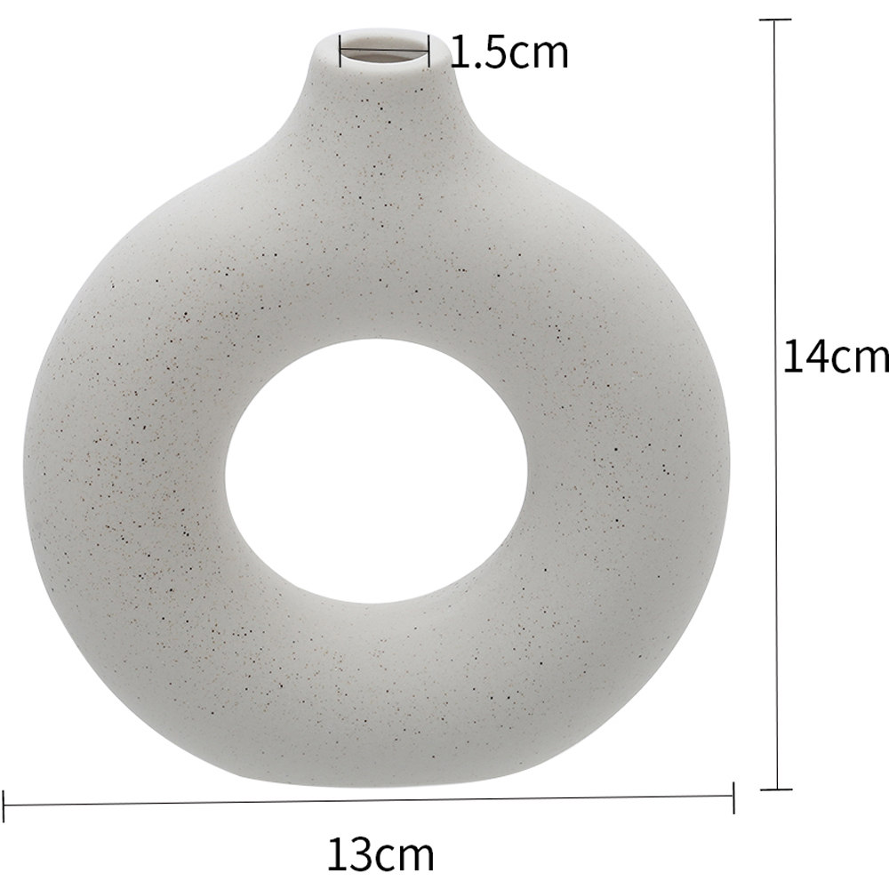 Embrace Nordic elegance with this Living and Home White Nordic Style Ceramic Round Vase. Dressed in a crisp white hue, its clean lines and distinctive doughnut-shaped hollow add a touch of playful sophistication to any room. Perfect for your dining table, mantel, or bookcase, this vase will undoubtedly become a focal point of your decor. Elevate your living space with this stylish and versatile accessory.