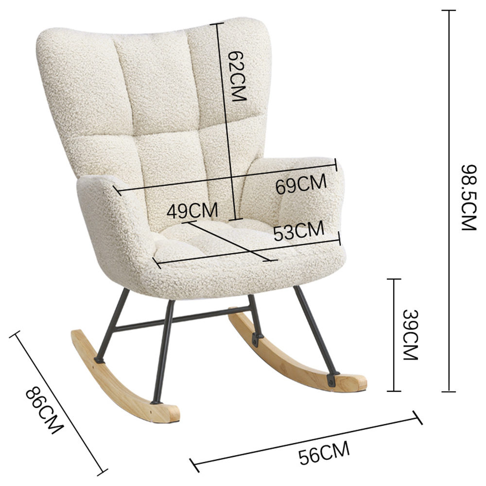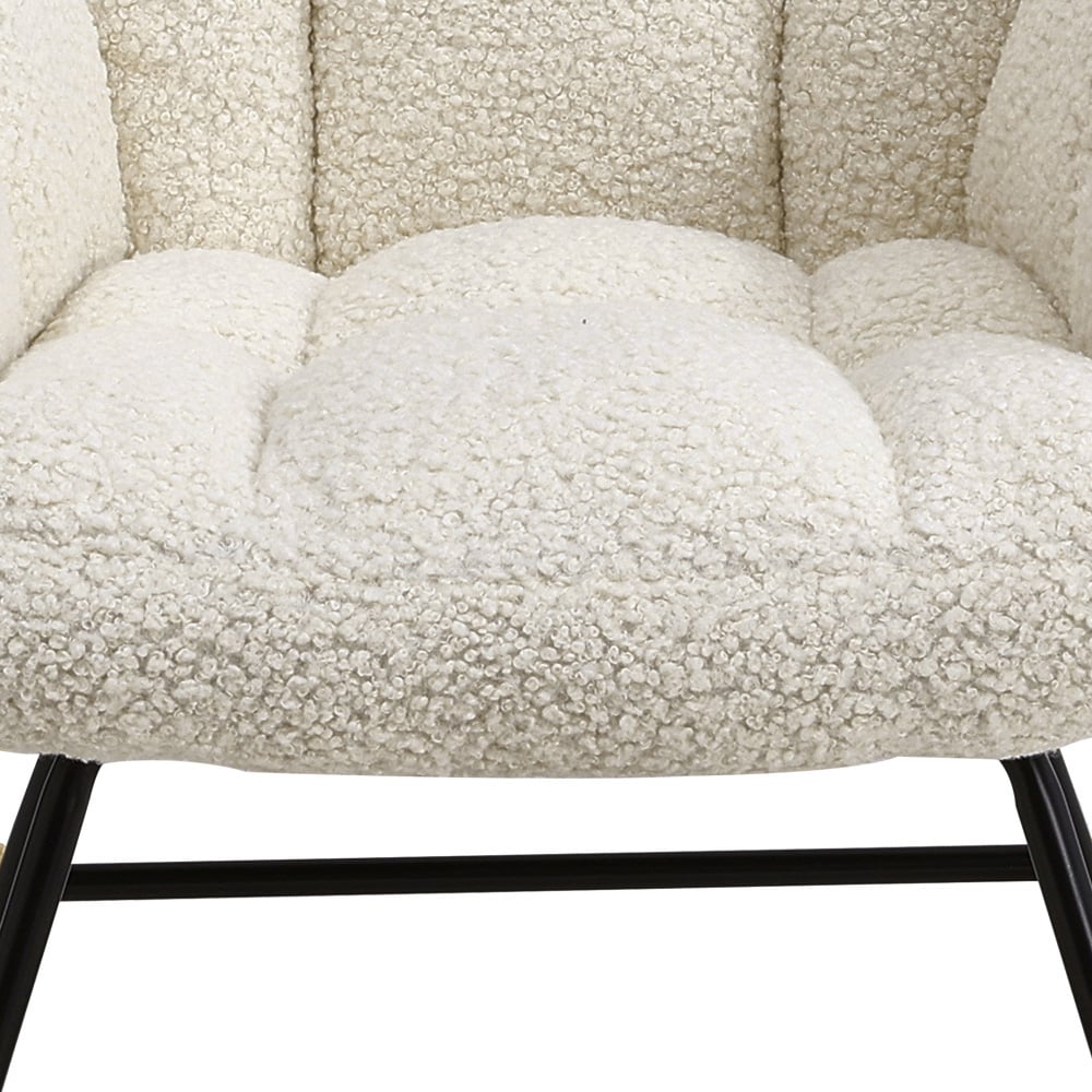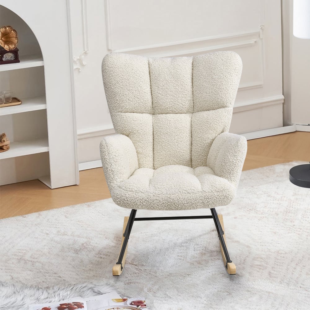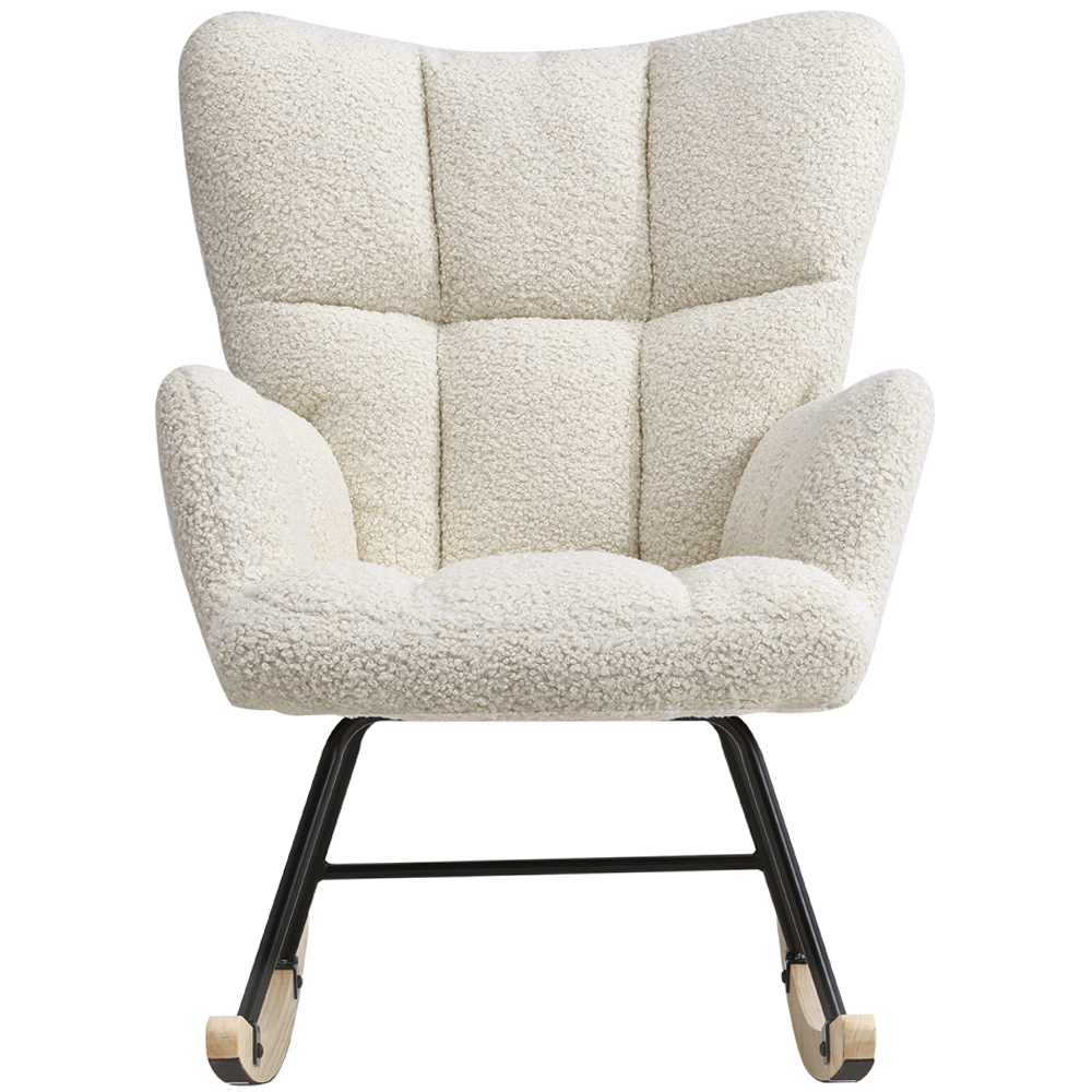 Add a fashionable seating option in your home with the Living and Home White Sherpa Tufted Rocking Chair. Featuring a foam-padded seat, armrests, and backrest, this chair ensures you stay comfortable even after long periods of sitting. It’s the perfect spot to calm your nerves with a gentle rocking motion. The tufted design and luxurious white sherpa fabric make this chair a stylish addition to any décor theme. The high and wide backrest provides optimal support, while the sturdy metal and wood base ensures a comfortable and safe rocking experience. Ideal for living rooms, bedrooms, and studies, this rocking chair effortlessly combines comfort and elegance.