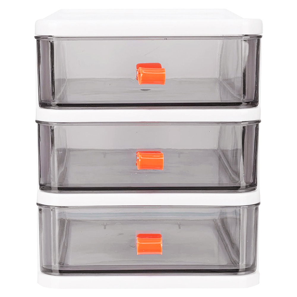 Keep your stationery or cosmetics organised with the Living and Home White Stationery and Cosmetic Storage Box. The three-tier transparent drawers offer a clear view of item placement with orange pull-out handles for easy accessibility. It is crafted using robust material with a dustproof, waterproof, and impact-resistant design. You can store various small bits and pieces like hair accessories, cosmetics or stationery items in this box.