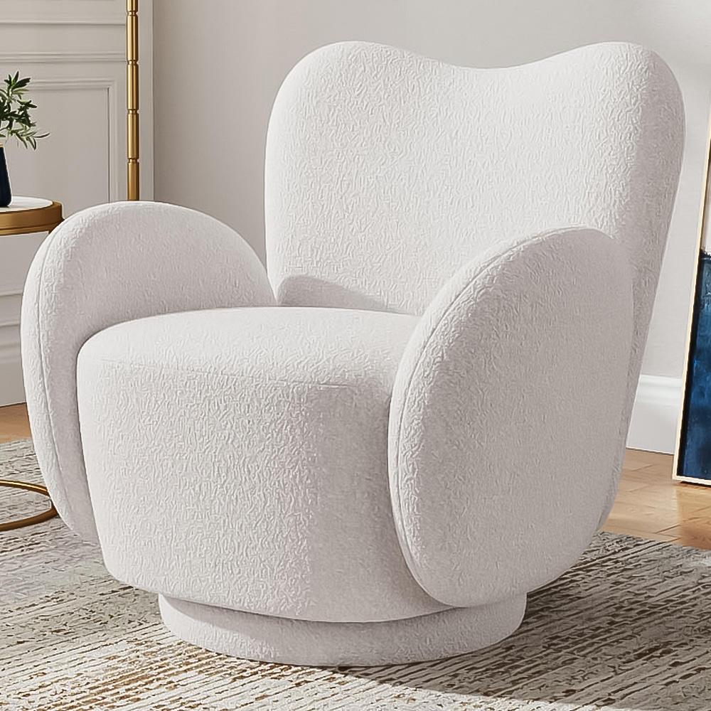 This swivel chair combines chic design with cozy comfort, making it a stylish addition to any room. Upholstered in plush teddy fleece, it offers a warm, soft seating experience that's as fashionable as it is inviting. Its rounded silhouette and gentle curves create a snug, welcoming feel, while the 360-degree swivel base ensures smooth movement and added convenience. Compact yet eye-catching, this chair is perfect for relaxing in the living room, curling up in a reading nook, or adding a modern touch to the bedroom.