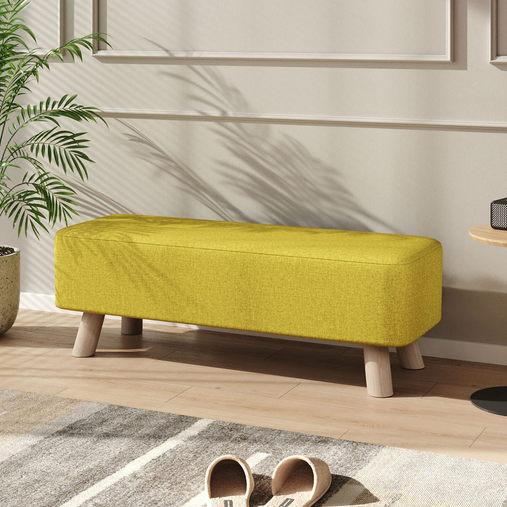 This footrest impresses with its smooth tofu-inspired shape that promises exceptional softness. Upholstered in durable linen fabric and filled with high-resilience sponge, it offers superior comfort compared to typical footstools. The sturdy, chunky legs crafted from high-quality pine wood ensure long-lasting durability. Practical and stylish, this versatile piece functions perfectly as a footstool or an occasional seat, and fits well against a wall or beside a shoe cabinet for convenient seating while changing shoes.