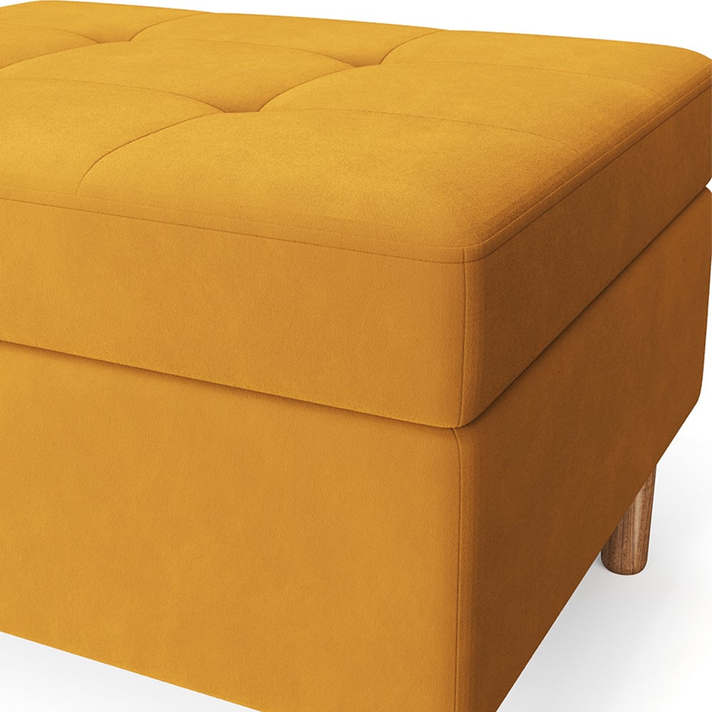 Enhance your space with the Living and Home Yellow Velvet Storage Ottoman. This modern storage ottoman combines style and practicality with hidden storage space beneath its top. Ideal for blankets or small items, it complements any decor. Durable velvet upholstery and tapered rubberwood legs provide stability and a chic touch to your home.