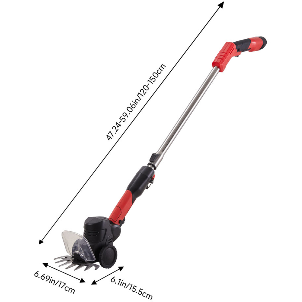 Tired of unruly grass and overgrown hedges? The versatile 2-in-1 cordless grass trimmer is the ultimate solution for effortless garden maintenance. Powered by a robust 300W pure copper motor, it delivers exceptional performance with energy efficiency and remarkable longevity. Plus, it comes with two interchangeable and sharp blades to tackle different tasks. The grass trimming blade is perfect for delicate lawns, while the hedge trimming blade effortlessly shapes hedges, shrubs, and tea bushes. With a focus on safety, it boasts a secure double switch and clear protective shield, keeping hands protected. Experience simplified gardening and a beautifully manicured outdoor space with this user-friendly trimmer.
