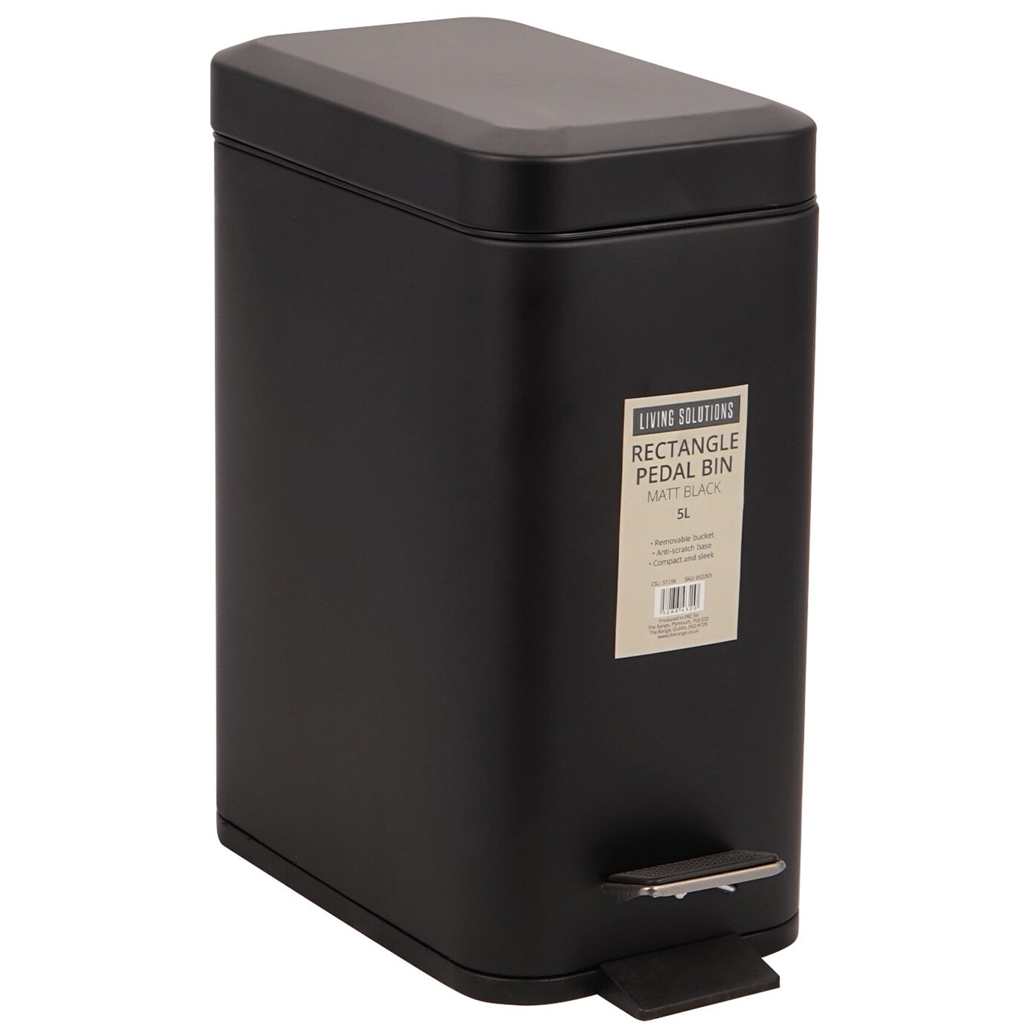 With a matt black finish, this Rectangle Pedal Bin 5L is a stylish and practical addition to your home. Ideal for the bathroom, it has a hygienic pedal opening and a removable bucket for easy emptying. The rectangular shape allows it to easily slip into the corner of your room, helping you to keep your space nice and tidy.