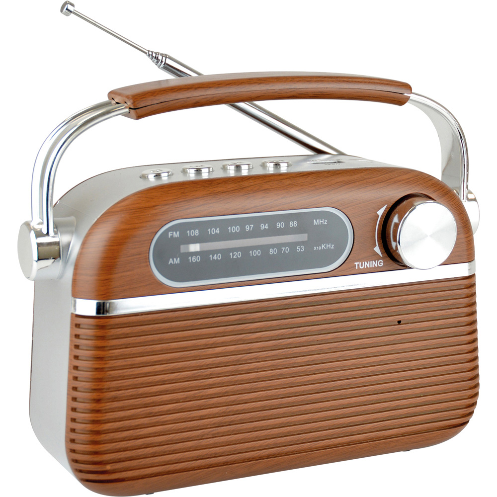 Elevate your musical experience with Lloytron Vintage Portable Radio with Bluetooth. You can tune in to your favourite AM or FM radio stations with this modern-style Bluetooth radio. Its stylish design makes it an elegant and classic addition to your home. This radio fits in with any room decor, whether modern or retro, with the modern features you require. You have to simply plug into the mains to charge the internal rechargeable battery or use it while kept plugged into the mains. You can also alternatively power with two D batteries for portability. This small radio is affordable and easy to use, allowing you to carry it easily to garden parties, camping and beach trips. Note: The batteries are not included.
