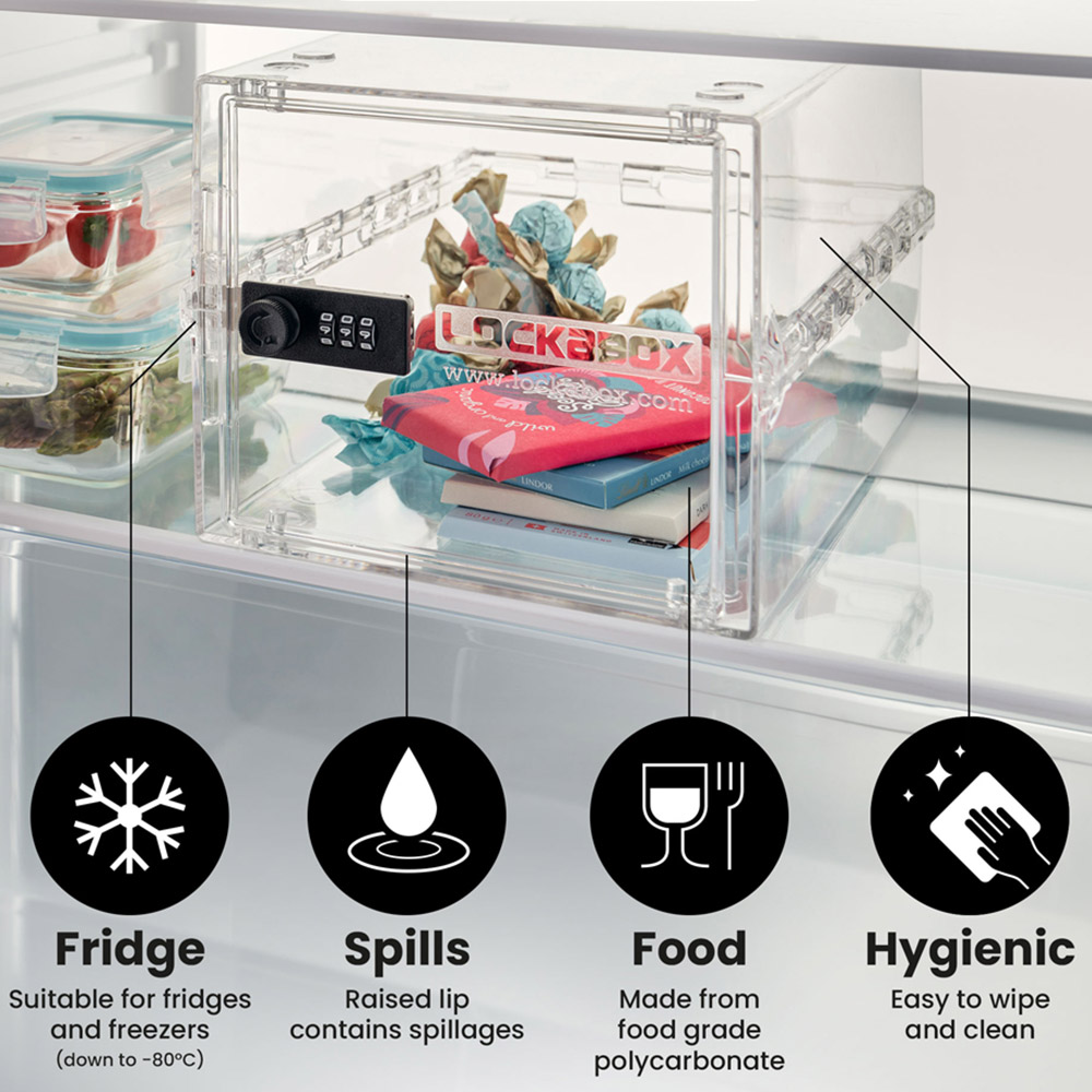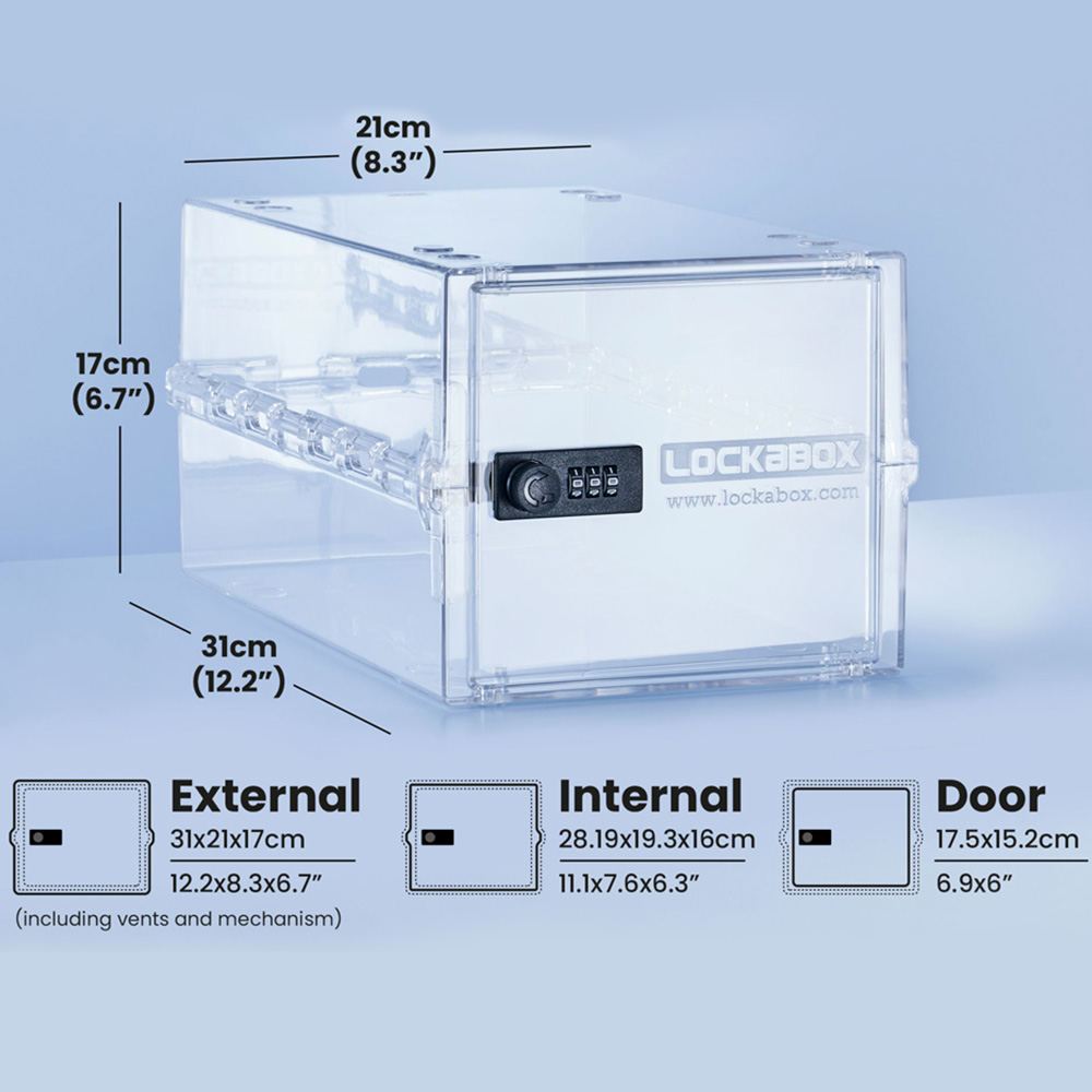 The Lockabox 10.5L Crystal Lockable Storage Box combines security with everyday use. Simple yet durable, this lockable box has a versatile range of uses due to its patented clam-shell structure and composition from food and medical-grade polycarbonate. This means whether you are looking for a fridge lockbox, lockable medicine box, or phone lockbox, this is a must-have product for all. Lockabox offers childproof storage. It comes with a three-digit lock and hence acts as a deterrent. This portable, stackable storage box comes assembled and is simple and easy to use. The box measures 17 x 31 x 21cm (Externally) and has a 10.5L capacity.