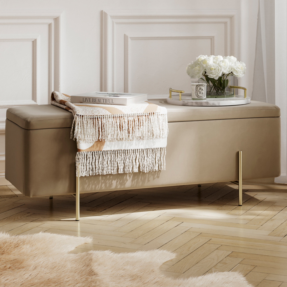 Lola Beige and Brushed Gold Velvet Storage Ottoman