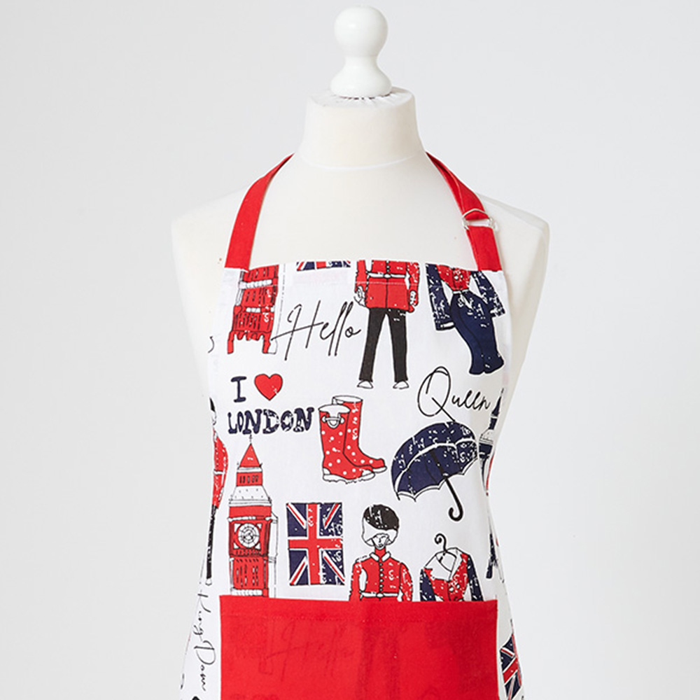 Protect your clothes in style with the Highlands Homeware London Print Cooking Apron. Crafted from 100% premium quality cotton, this apron is designed to withstand all kitchen spills. It features an adjustable waist tie for a comfortable fit, making it both practical and fashionable for any cooking enthusiast.