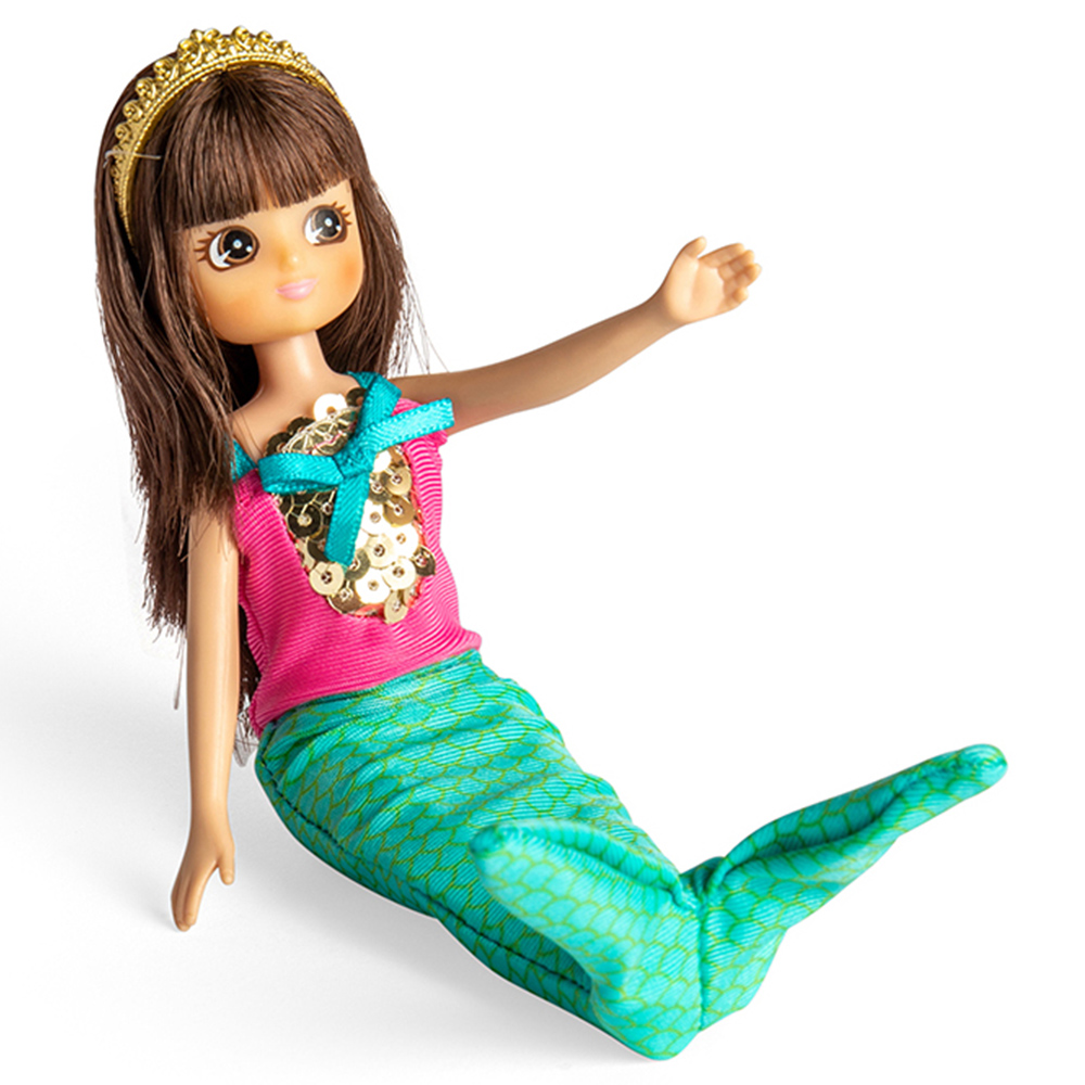 Little mermaids will fall head over fishtails for this fantastical Lottie Dolls Mermaid Dreams Doll! Mermaid Dreams Lottie is ready for an underwater adventure with her green scallop-patterned mermaid tail, gold sequin vest, and crown. She also comes with a pink snorkel mask. This whimsical doll toy is great for boosting kids’ water confidence and helping them learn through pretend play. Thinking up and acting out different storylines for their Mermaid Dreams doll will do wonders for your tot’s communication skills, vocabulary, and emotional development. Lottie Dolls celebrates and inspire real kids by crafting child-like doll toys that look like them. They are based on the average proportions of a nine-year-old child, and at 18cm tall they’re the perfect size for small hands to play with. Suitable for 3+ years.