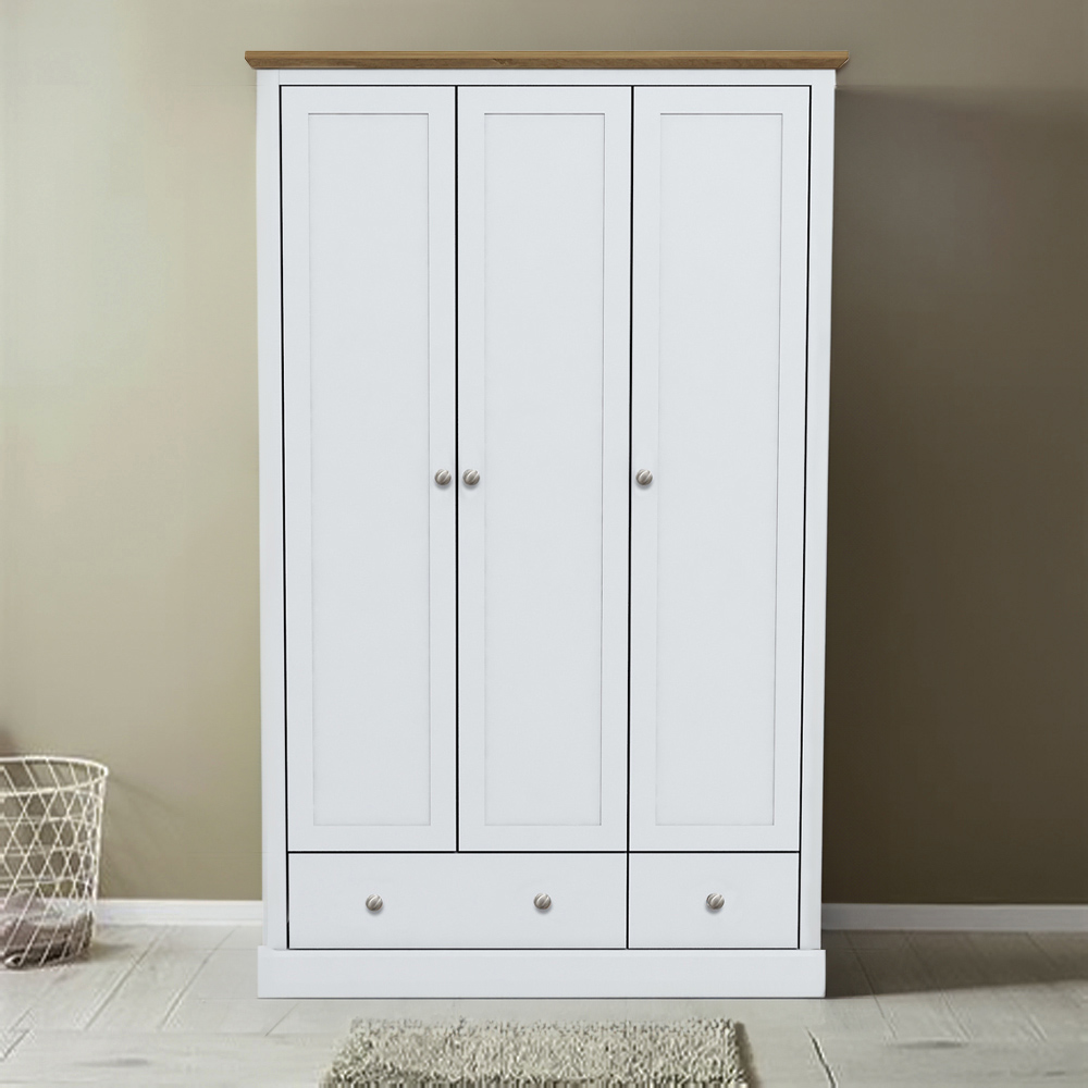 LPD Furniture Devon 3 Door 2 Drawer White Wardrobe