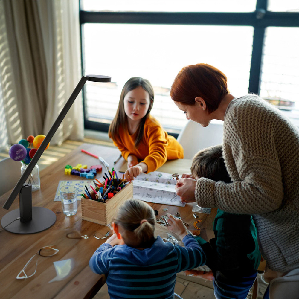Experience the new benchmark in lighting with the LUCTRA® TABLE LITE, an LED lamp that combines biologically effective light with cutting-edge gesture control. Designed to support your circadian rhythm and internal clock, it offers optimal colour temperature and light intensity, mimicking daylight for healthy hormone production and mental well-being. The intuitive three-dimensional gesture control allows effortless adjustment of light intensity and colour, ensuring uniform workplace illumination and realistic colour rendering. The light intensity is steplessly adjustable, and the colour temperature can be set in five steps between 2,700 and 6,500 Kelvin. The rotatable circular light head provides perfect lighting for any activity, and the high-grade aluminium body ensures a premium feel and maximum durability. Assembly is simple with included instructions. Awards: Red Dot 2024 Winner UX Design Awards 2024 Nominee Specifications: Colour temperature: Adjustable in 5 steps between 2,700K and 6,500K LED lifespan: Over 50,000 hours Cable length: 1.5 metres Base: Stable steel weighting Body: High-quality aluminium Connection: Universal USB-C Designed in Germany and built to last