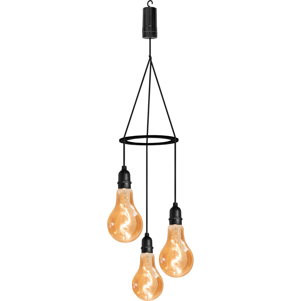 Enhance the ambience of your outdoor space with these elegant Luxform Battery Operated Glass Filament Bulbs. Designed with a captivating spiral filament, these bulbs will add a touch of style to any garden. Hang them from trees, garden umbrellas, pergolas, or other garden structures using the attached hook. The bulbs come with an on and off switch that also functions as a 24-hour timer. Setting 1 provides a dusk till dawn effect, illuminating the bulbs for six hours during the night and then automatically switching them off for 18 hours during the day. Setting 2 keeps the bulbs permanently on, while setting 3 turns them off. With an IP44 rating, these bulbs are suitable for outdoor use and can also be used indoors. Since they are 100% battery operated, there is no need for any wires. The bulbs are equipped with three cord lengths (45cm, 55cm, and 65cm) to create a beautiful cascade effect. Please note that 4x AA batteries are required (not supplied).