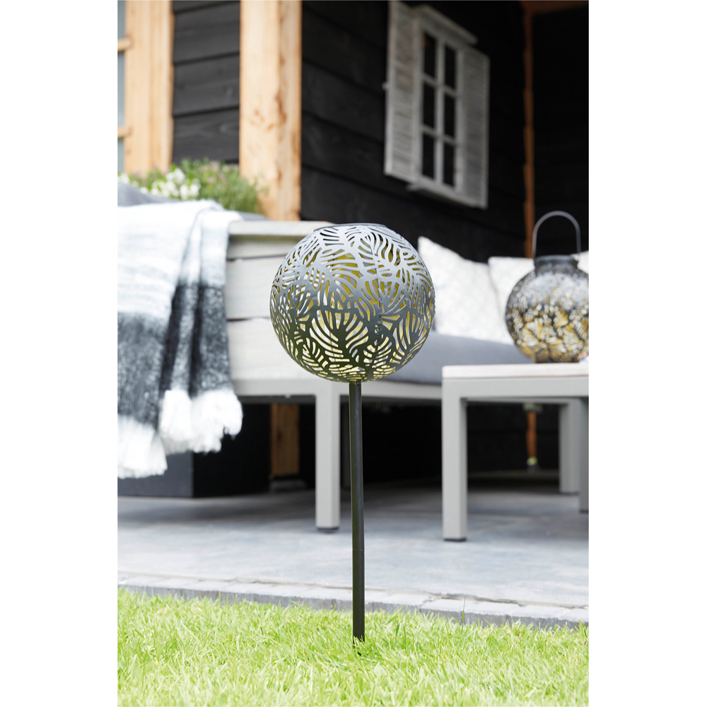 Make a stylish addition to your patio with this Black Copper Solar Samba Stake LED light from Luxform. This stylish solar tripod adds cosy and intimate atmospheric lighting to any garden or Patio area. It will also enhance any seating area with its warm-tone white LED light. It has a modern round lampshade and a garden spike ideal for placing in borders or planters. The light has a built-in busk sensor that automatically switches on when it gets dark and needs no power supply. It simply recharges the internal AA batteries from sunlight, and a full charge should give around six hours of use. The light comes with one internal AA batteries and is simple to self-assemble.