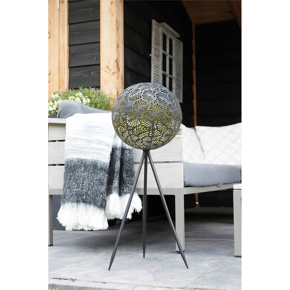 Make a stylish addition to your patio with this Black Copper Solar Samba Tripod LED light from Luxform. This stylish solar tripod adds cosy and intimate atmospheric lighting to any garden or Patio area. It will also enhance any seating area with its warm-tone white LED light. It has a modern round lampshade and a stylish yet functional tripod base. The light has a built-in busk sensor that automatically switches on when it gets dark and needs no power supply. It simply recharges the two internal AA batteries from sunlight, and a full charge should give around six hours of use. The light comes with two internal AA batteries and is simple to self-assemble.