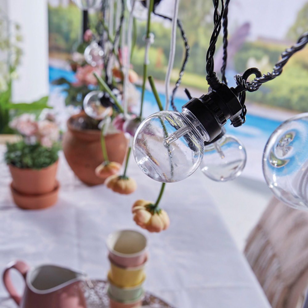 This cosy party lighting from Luxform Lighting is powered by 3x AA batteries (not supplied), meaning they can be set up and enjoyed in a super quick time. The set is supplied with 20 clear G45 bulbs, which offer a super stylish and classic look. Additionally, the lights have eight separate functions and a handy on/off button. The lights feature an energy-saving timer function which can be set to turn the lights on for six hours over 24 hours to save energy. Bulbs are placed every 30cm with a very generous total cable length of 6.05m.