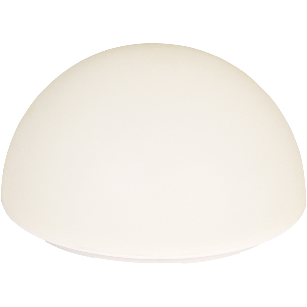 Featuring a stunning white globe design, this La Rochette Solar Garden Light from Luxform is ideal for the atmospheric illuminating of walkways and borders and for marking along driveways, garden paths, terraces and porches. This light is supplied with an on-off switch and a dusk-dawn sensor which means the light will switch on at dusk and will automatically shut off at dawn. The switch on the product determines whether the light displays as white or RGB. The ground spike is provided so that the light can be placed into the soil. This ecologically friendly solar light requires no household current but gathers energy directly from the sun. It is therefore particularly suitable for use in remote areas and provides sufficient light to mark entrances and accent walkways and steps. Plus, it is manufactured from UV-resistant plastic for long lasting use.