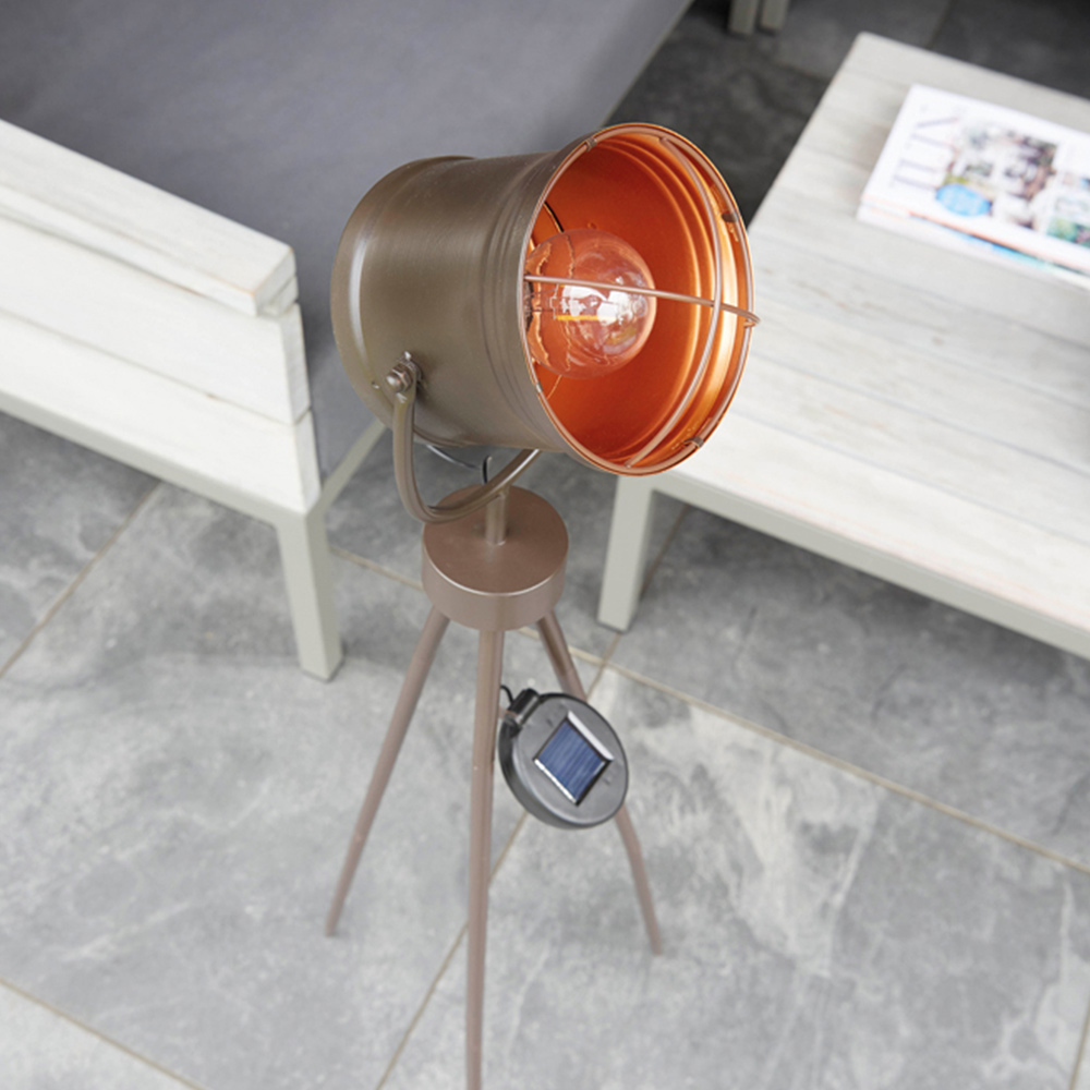 This Stylish Solar Studio Tripod Lantern is perfect for adding cosy, intimate, atmospheric lighting to any garden or patio area. It will also enhance any seating area with its warm, soft tone, white LED light. It comes with a modern round lampshade and a stylish yet functional tripod base. With a built-in dusk sensor, the light will automatically switch on when it gets dark and needs no power supply. It recharges the internal AA batteries from sunlight. A full charge should give around 6 hours of use.