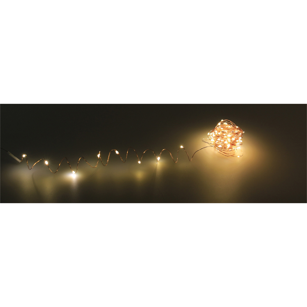 Uplift your garden space with this Sevilla Garden Solar Micro 100 LED String Light from Luxform. These lights are an ideal choice for draping in bushes or wrapping around a gazebo; you can use them anywhere without power. Made using an ultra-thin, sturdy copper wire, it is easy to bend into any shape or wrap around anything in the garden. Also, the lights are nearly invisible when installed. All you must do is place the solar panel in a sunny place so the battery can charge and enjoy this decorative lighting with 100 warm white LEDs that will switch on when it gets dark.