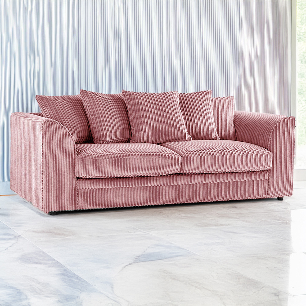 Luxor 3 Seater Pink Jumbo Cord Scatter Back Sofa