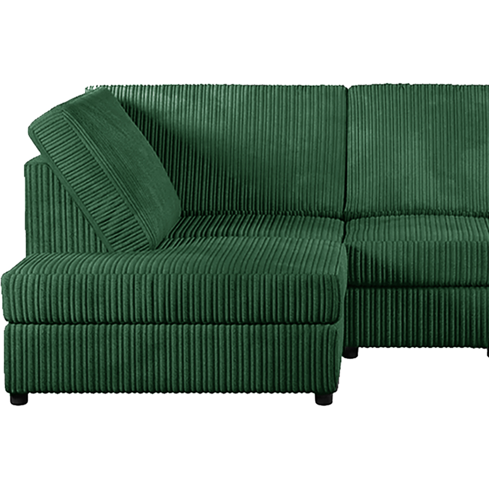 Luxor 4 Seater Green Jumbo Cord Left Hand Facing Full Back L Shaped Corner Sofa Set