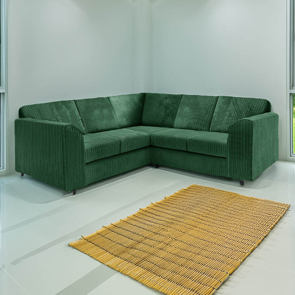 Luxor 5 Seater Green Jumbo Cord Full Back L Shaped Corner Sofa Set