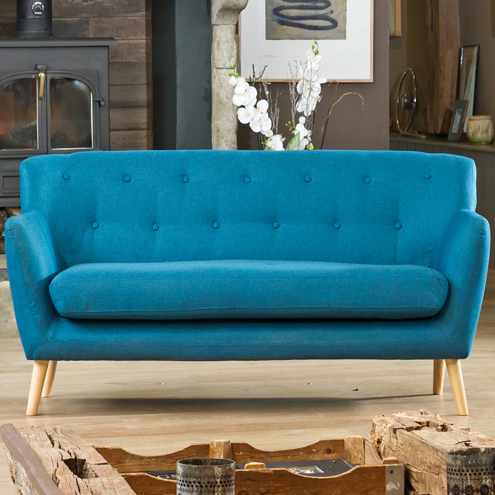 Elevate your living space with this Lynwood 3-Seater Teal Fabric Sofa. This suite has a contemporary design and firm seat cushion to provide perfect support. Its Scandi-style structure makes it a perfect option for both business and home environments. Durable and sturdy, the sofa is crafted using solid, hard wood with a spring and foam-filled interior for comfort. For added convenience, the foam-filled seat cushion is removable for easy cleaning and the studded back provides a lovely finish. This piece of furniture is supplied with both light and dark wooden legs to allow you to customise the final finish.