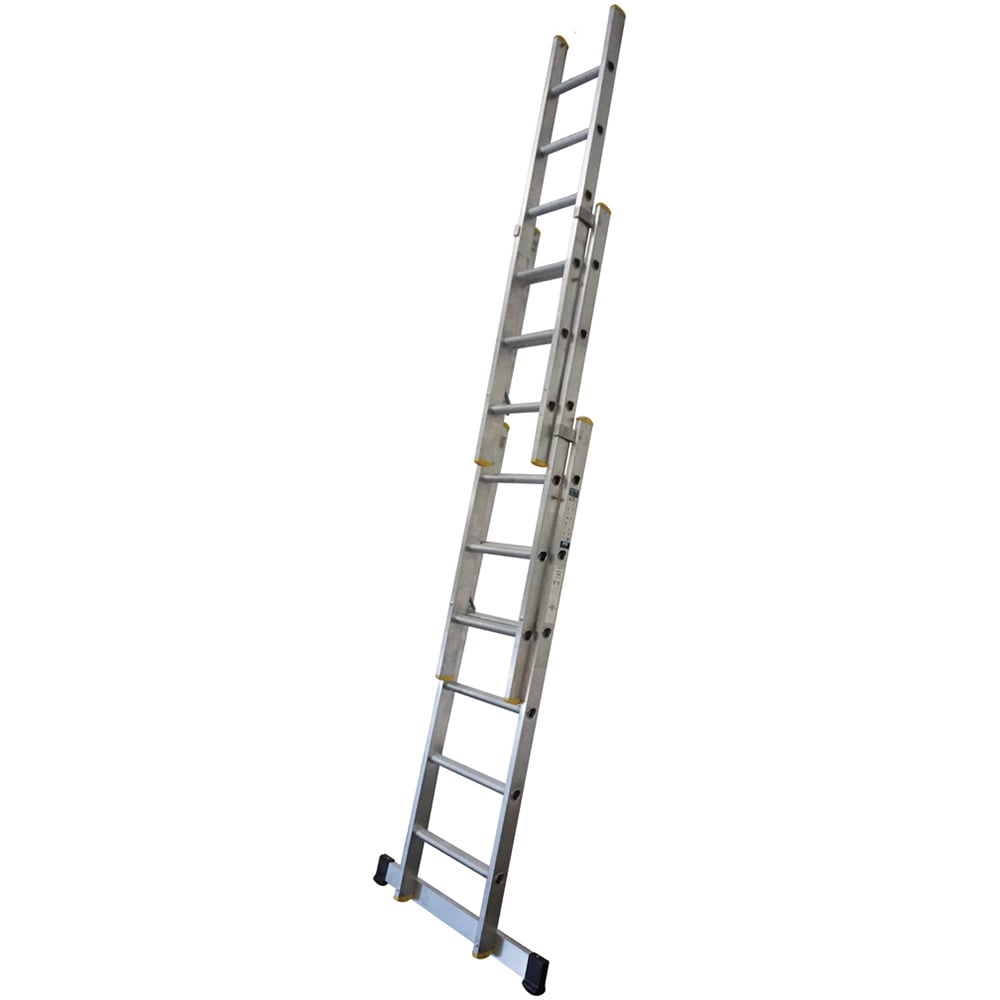 Reach those difficult-to-access heights easily using this Lyte Ladders & Towers EN131-2 Professional 3 Section 18 Rung Extension Ladder. This ladder is designed with three sections and has 18 sturdy D-shaped rungs that meet the latest safety standards to ensure you can climb comfortably and securely. With a maximum load capacity of 150kg, it also features improved box section stiles and an adjacent stabilizer bar for added stability and ease. Whether you need to complete DIY projects or tend to your garden, this robust and durable ladder can help you get the job done safely and efficiently.