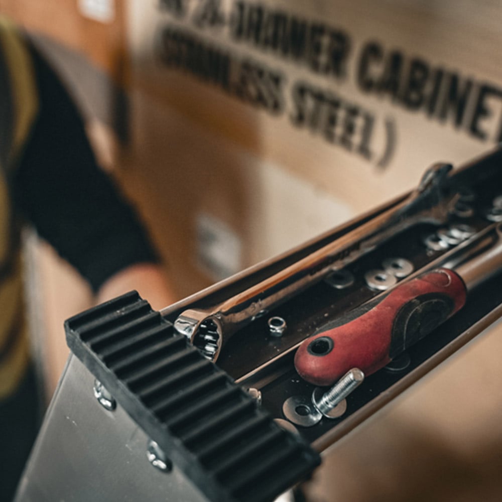 The UK-made MagnaStep Aluminium Platform Step Ladder offers the perfect balance of durability, safety, greater working height, and innovative features for trade and industrial professionals.