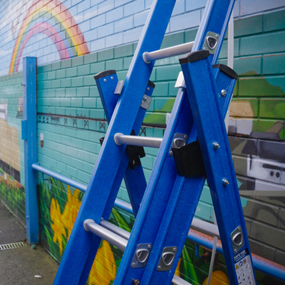 Upgrade your safety protocols with the UK-made GFLCL Glassfibre Professional Combination Ladder, expertly crafted for electrical environments. This ladder is an essential tool for professionals who demand reliability and versatility while working in situations where electrical safety is crucial. With certification to withstand electrical hazards up to 30,000 volts, it guarantees your protection during electrical tasks. As a 4-in-1 ladder, it effortlessly transforms into an A-frame, extension ladder, stepladder with extended reach, and a stairway ladder. The D-shaped rungs offer both comfort and secure footing, making it the ideal choice for your next project.