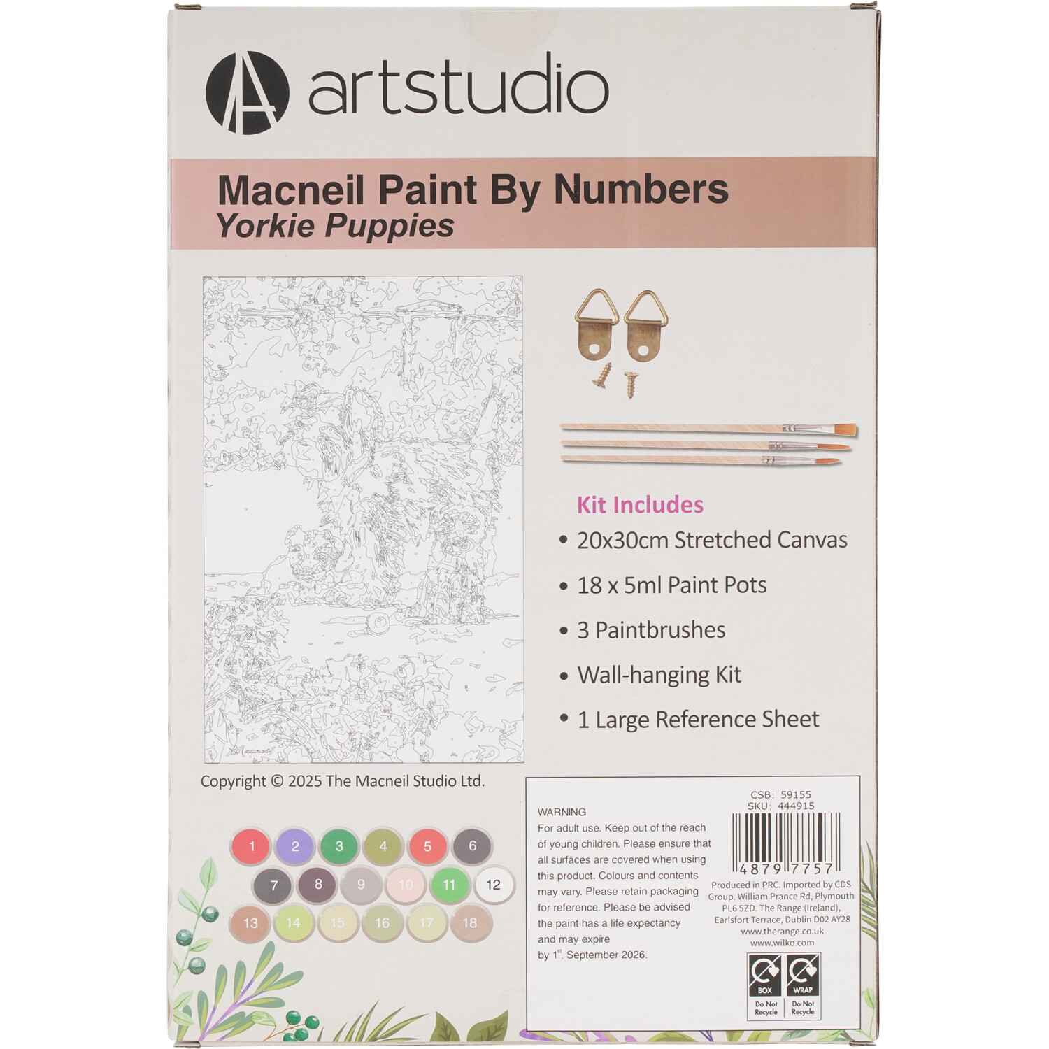 Enhance your creativity with the MacNeil Paint By Numbers Yorkie Puppies or Kittens Kit. Available in assorted styles, it features a cute puppy or kitten design that you can bring to life with rich colours. Perfect for engaging in a calming and satisfying activity, this kit makes a thoughtful gift for animal lovers and art enthusiasts alike.