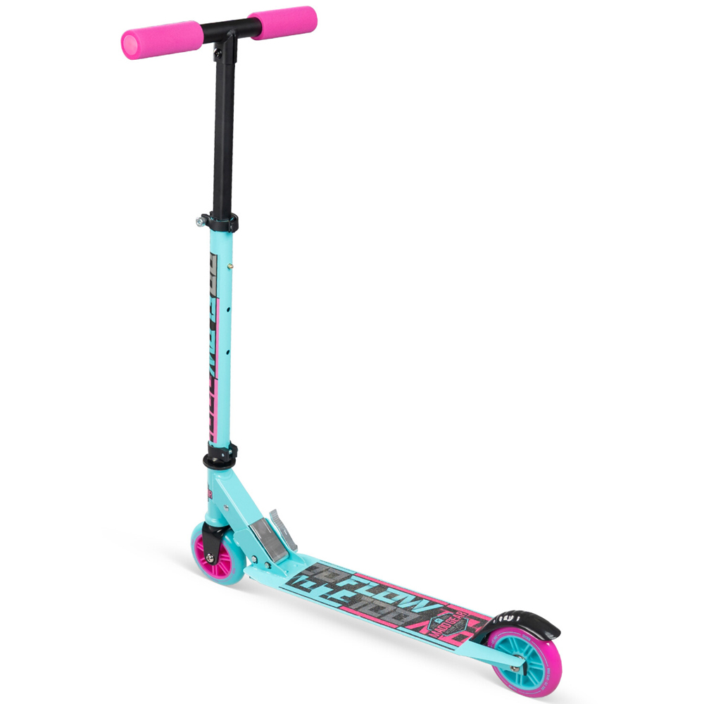 Get ready for an exciting adventure with the Madd Gear Carve Flow 100 Scooter. This scooter features a lightweight, foldable design that makes it easy to carry around. It is equipped with smooth-rolling wheels and soft foam grips for comfortable use, while the quick-stop brake ensures added safety. The handlebar is height-adjustable with three stages, allowing you to easily adjust it to your child's height. Super fun and durable, this scooter is perfect for keeping kids active and entertained.