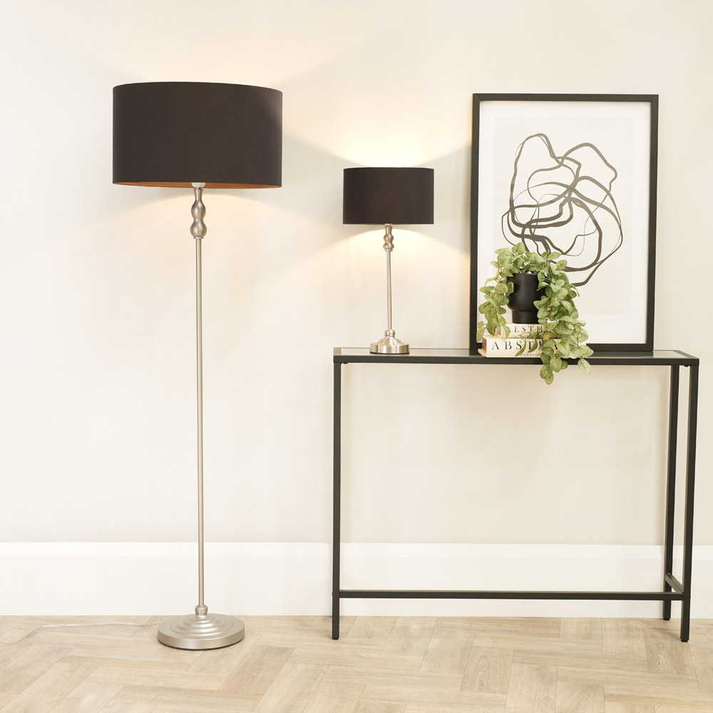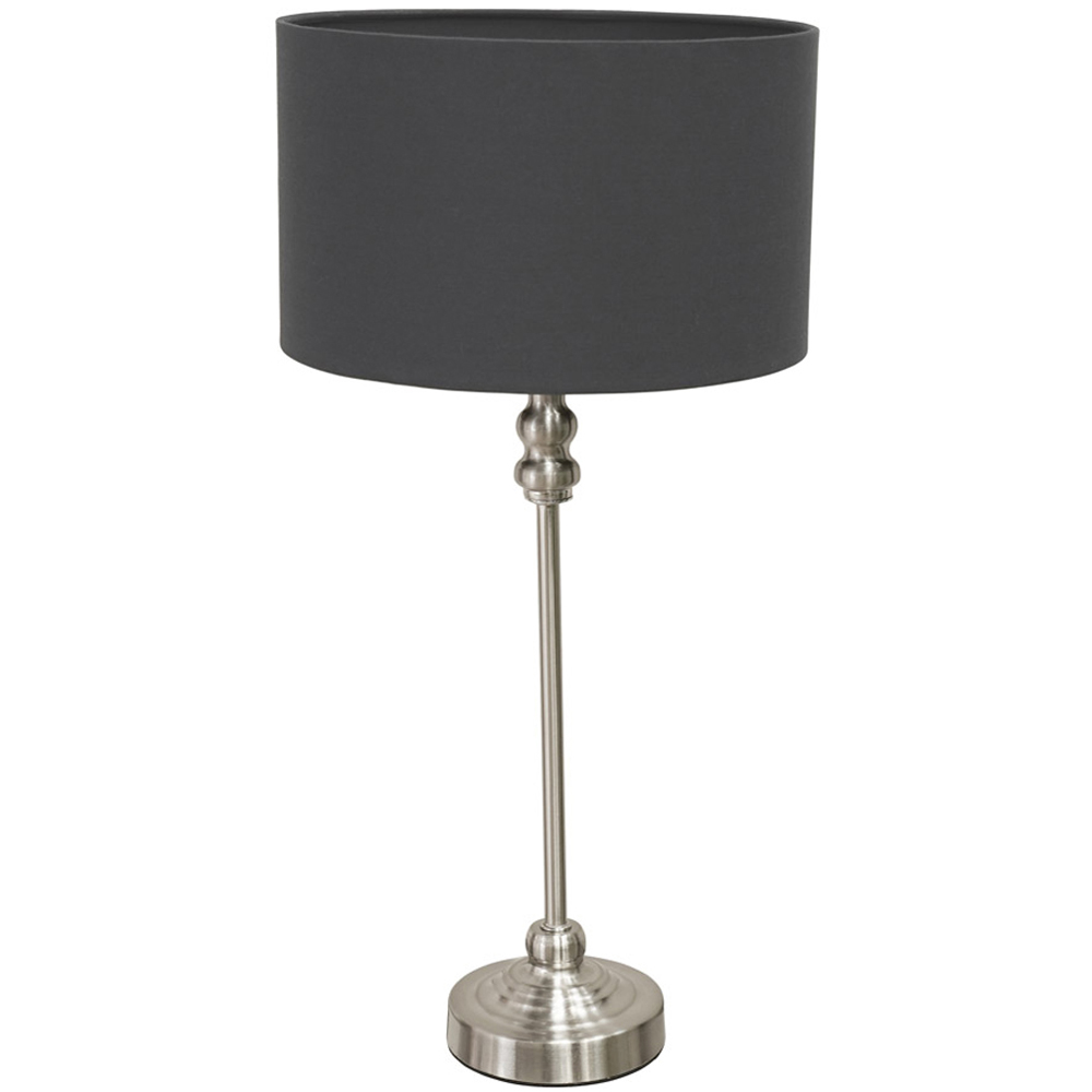 Illuminate your space with the ValueLights Maggie Charcoal and Brushed Chrome Drum Shade Candlestick LED Table Lamp. Featuring a sleek brushed chrome base, this table lamp fits effortlessly into smaller spaces while maintaining a refined look. The charcoal fabric drum shade gently diffuses the light to create a warm, inviting atmosphere. Equipped with an energy-efficient LED bulb, it is ready for immediate use. For added peace of mind, it includes a 12-month warranty, making it a reliable choice for any home. Dimensions: H50 x W25 x D25cm.