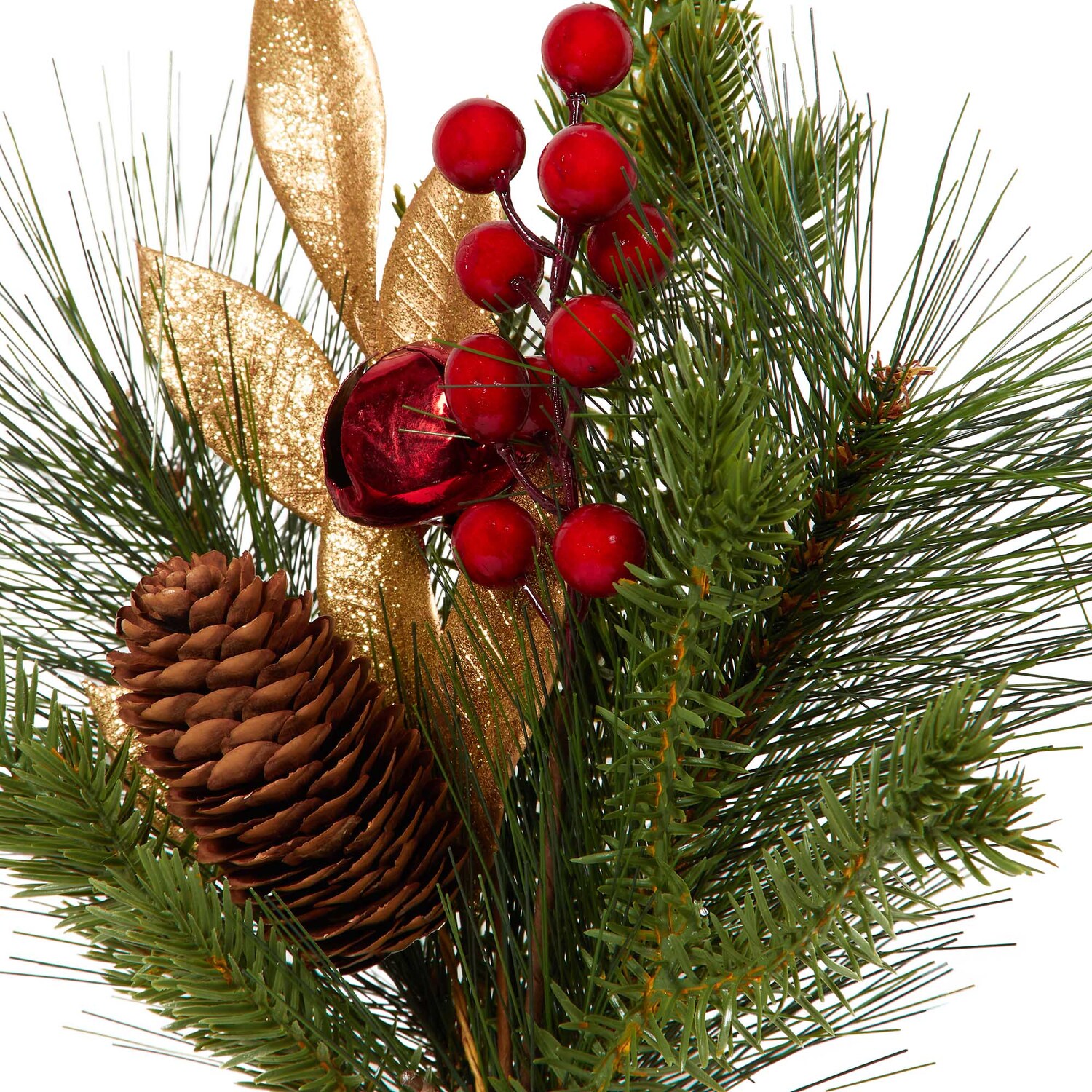 Add a touch of natural elegance to your holiday decor with the Magnolia Floristry Pick. Featuring rich, velvety Magnolia leaves, vibrant red berries, and rustic pinecones, this pick is perfect for enhancing wreaths, centrepieces, or your Christmas tree. Its festive colour palette brings any seasonal arrangement a warm and inviting feel.