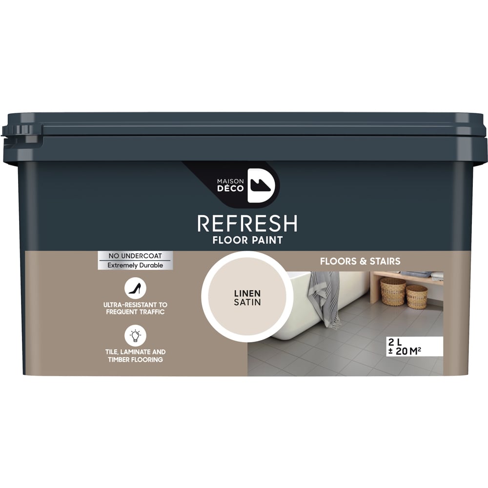 Liven up the whole look and feel of a room by refreshing your flooring. The Refresh Floor Paint from Maison Deco is specially designed to renovate high traffic surfaces such as tiled, wooden or laminate flooring and stairs in your home. Its ultra-adherent, washable formula ensures that floors and stairs can withstand the intensity of everyday life. This low VOC paint is suitable over Tiles (Ceramic, Enamel, etc.), Wood (bare, painted, varnished), Laminate and Natural Stone (marble, granite, etc.). The paint is easy to apply requiring no undercoat. On tiles, apply two coats with a short pile roller. On wood, laminate and natural stone, apply two coats using a medium pile roller. Note, any surfaces that are varnished, glazed or previously painted will require a light sand. With a passion for colour and finishes, Maison Deco combines technical know-how and decoration expertise to make renovation projects more than just a dream. The refresh range allows you to breathe new life into your interiors, inspiring endless possibilities of renovating. Say goodbye to drab and dated decors, refresh and liven up your home!