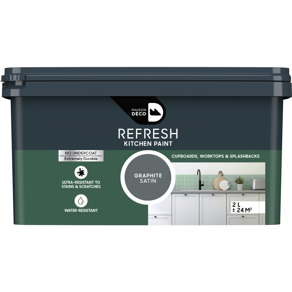 Renovate your whole kitchen without needing to pick up a hammer with this Refresh Kitchen paint from Maison Deco. It is specially designed to update high-use surfaces such as cupboards, worktops and splashbacks. It has been developed to withstand all that life can throw at a kitchen including water, stains and grease. This low VOC paint is suitable over Laminate, Melamine, Wood (bare, varnished, painted), Tiles, Glass, Stainless Steel and Aluminium. the paint requires no undercoat, adhering directly to difficult surfaces such as tiles and melamine. Simply apply two coats with a short pile roller or brush to easily transform kitchen surfaces. Note, melamine and previously coated wood will require a sand before applying. On horizontal surfaces like worktops and on splashbacks, it is essential to apply REFRESH Kitchen Extra Strong Varnish for ultimate protection. With a passion for colour and finishes, Maison Deco combines technical know-how and decoration expertise to make renovation projects more than just a dream. The range allows you to breathe new life into your interiors, inspiring endless possibilities of renovating. Say goodbye to drab and dated decors, refresh and liven up your home!