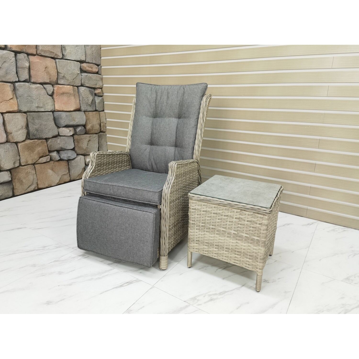 Relax in ultimate comfort and style with the Cambridge Bistro Set. Made from PE synthetic rattan to protect against UV rays and a solid aluminium frame to prevent rust and corrosion. This robust bistro set is a fantastic addition to your garden, patio or balcony. The thick, soft and inviting cushions add extra comfort and the adjustable backrests are perfect for soaking up the sun. The accompanying table is ideal for drinks and snacks, making this a wonderful place to catch up with a friend, get lost in a good book or simply enjoy a warm summer's day.