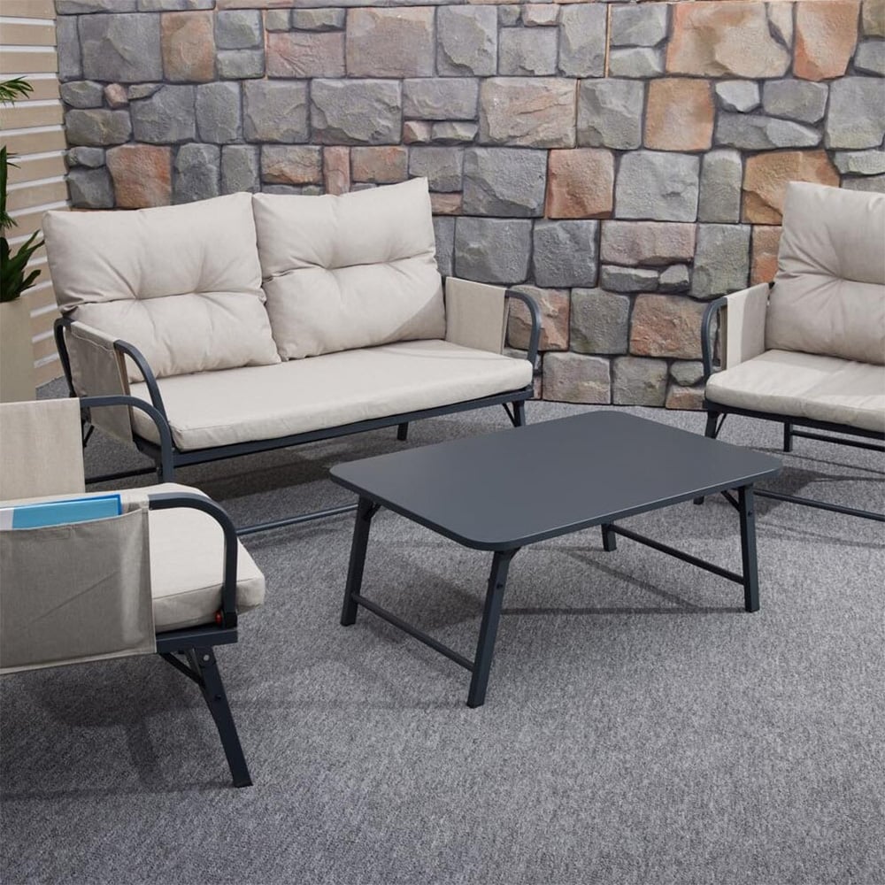 This 4 Piece Foldable Tea Set is the perfect way to enjoy the summer sun in style. It features a foldable design, meaning assembly is quick and straightforward, plus the furniture can be conveniently stored away when not in use. Featuring a sofa, two chairs and a coffee table, this sensational patio set is ideal for hosting garden parties, BBQs, catching up with friends and more. The addition of plush, luxurious cushions will allow you to sit back and relax in style and comfort. Protect your garden furniture with our durable and waterproof covers. Explore our wide range of heavy-duty Garden Furniture covers to find the perfect fit for your needs.