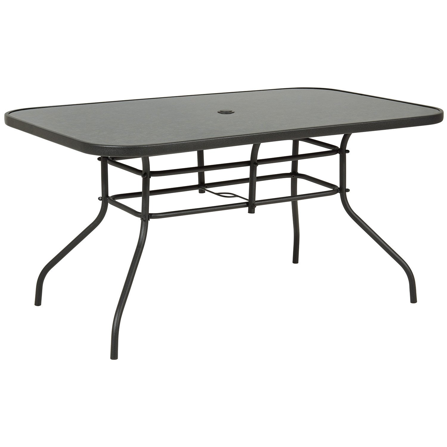 Ideal for hosting a garden party or eating meals outside, this Rio Large Garden Table provides you with plenty of room for family and friends. Made with a durable powder coated steel frame for extra weather resistance, this table has a 5mm tempered glass top that looks extremely stylish in any space. Comfortably seating up to six people, this Garden table perfectly complements Rio garden chairs and is also compatible with a parasol.