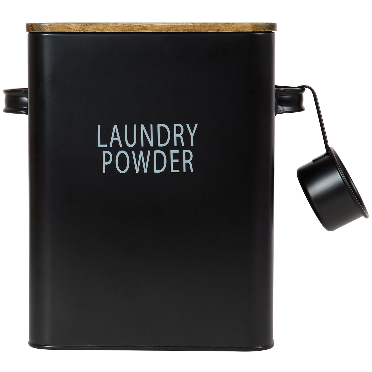 Get rid of unsightly powder boxes and tidy up your cleaning cupboard with this Malmo Laundry Powder Box with Dark Wood Lid. This matte black box modernises and updates your utility room or cupboard and even comes with a metal scoop for washing powder. It will look fantastic sitting on countertops or in your kitchen cupboard and is finished with a rustic wooden lid for a minimalist, Scandinavian effect.