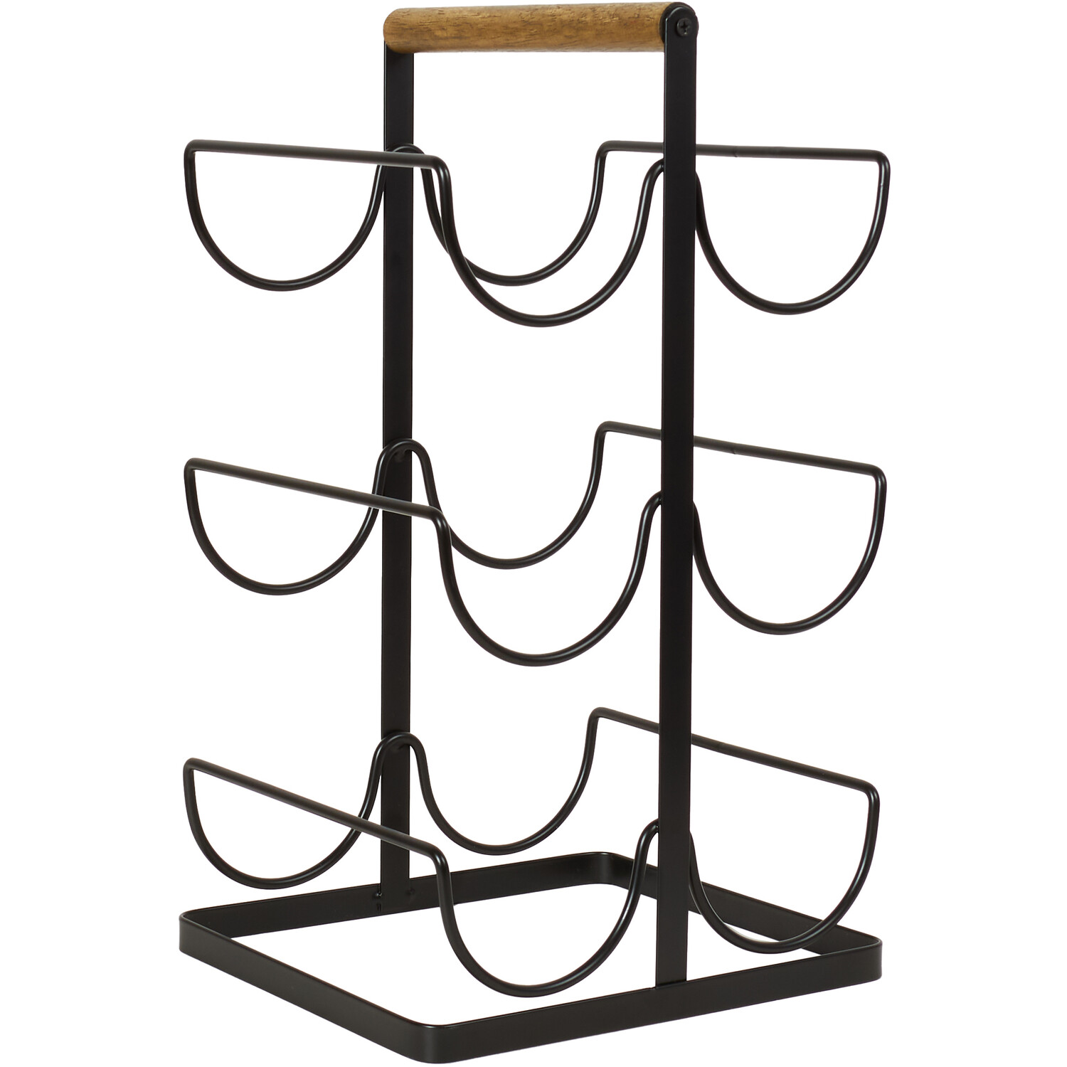 The Malmo Wine Rack is a contemporary and stylish kitchen or dining space accessory. The rack is designed to hold up to six bottles of wine and is crafted with matt black wire and a wood handle for a stylish, urban look. The rack can be used with other items in the Malmo collection for a modern kitchen look.