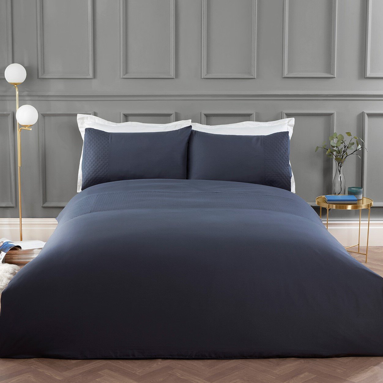 Providing class and sophistication, this Manhattan Pinsonic Duvet Cover and Pillowcase Set is sure to elevate your bedroom style. Inspired by Art Deco design, this bedding brings a luxury feel to your space as well as sumptuous comfort. The pinsonic design gives texture while the rich navy gives a pop of colour to your room.