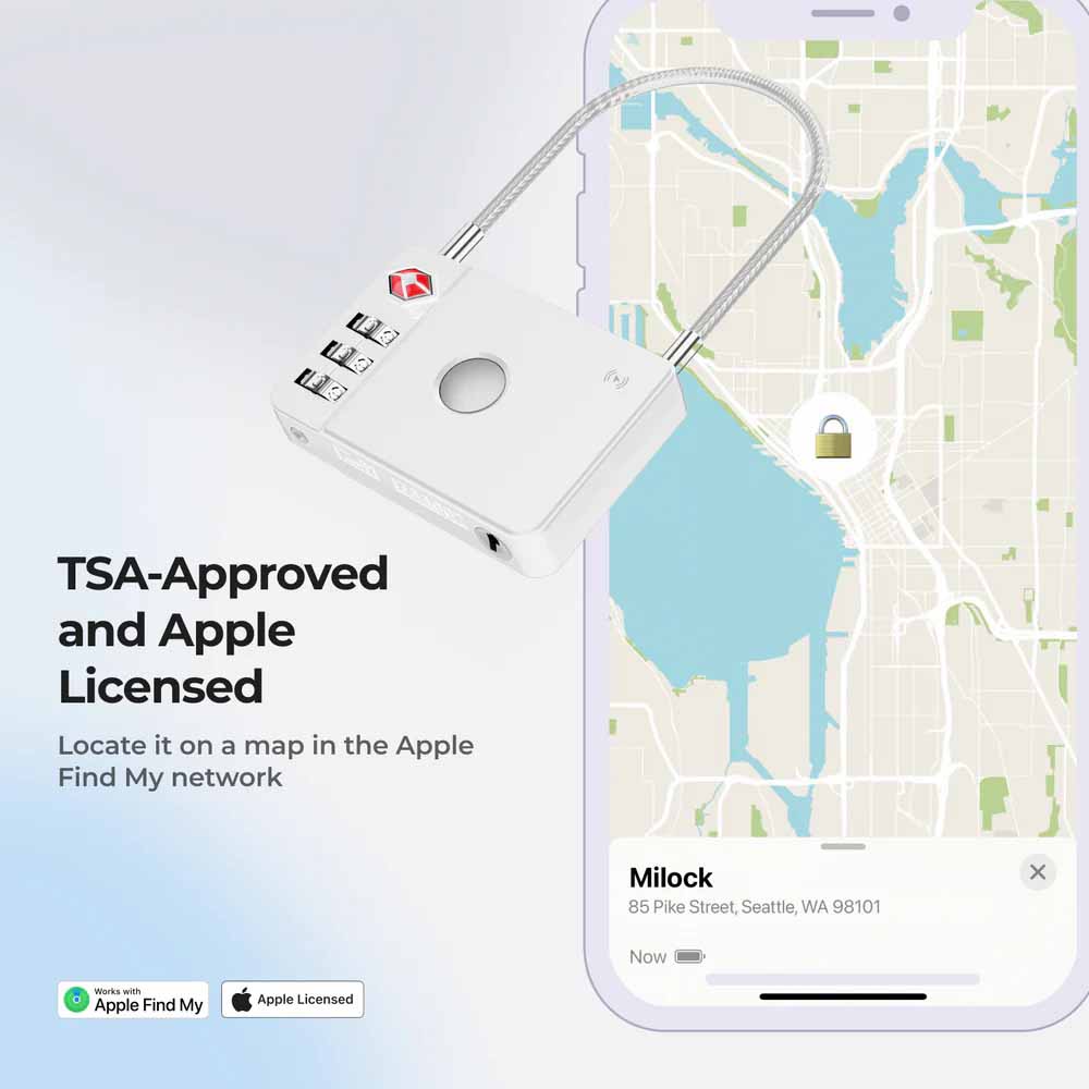 This Maplin MiLi MiLock Combination Padlock Item Locator is the Ultimate Travel Companion. It is the world's first and only TSA approved and Apple Find My network lock. Engineered for enduring performance, MiLock features replaceable CR2032 batteries, ensuring your lock remains reliable and functional over extended periods. Its waterproof design, certified up to IP65 standards, guarantees durability and reliability in any environment. MiLock combines robust security with advanced technology, making it an essential accessory for travellers who prioritise both safety and convenience. Invest in MiLock today and experience the ultimate in travel protection, knowing that your belongings are secure and easily trackable, no matter the circumstances. Enjoy your travels with the confidence that MiLock provides, ensuring your luggage is always safe and sound.