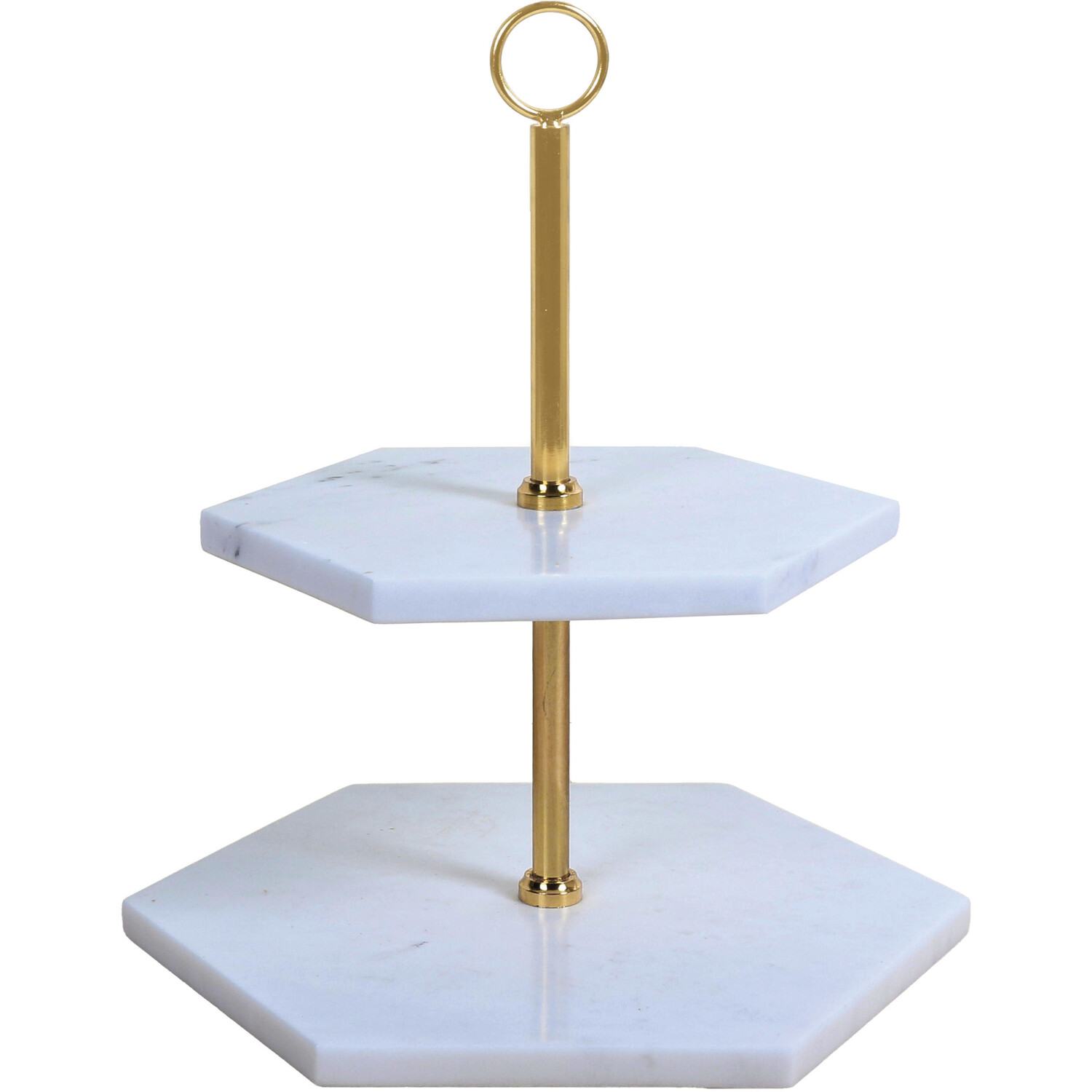 Ideal for events, afternoon tea, and buffets, this Marble 2-Tier Cake Stand is sure to look the part. Crafted from sleek marble hexagonal platforms with a golden metal stand piecing them together, this is the ideal accessory to show off slices of cakes, your best squares of traybakes, scones, and so much more. It's sure to make any table feel all the more spectacular when you bring this contemporary stand out.
