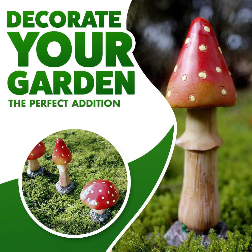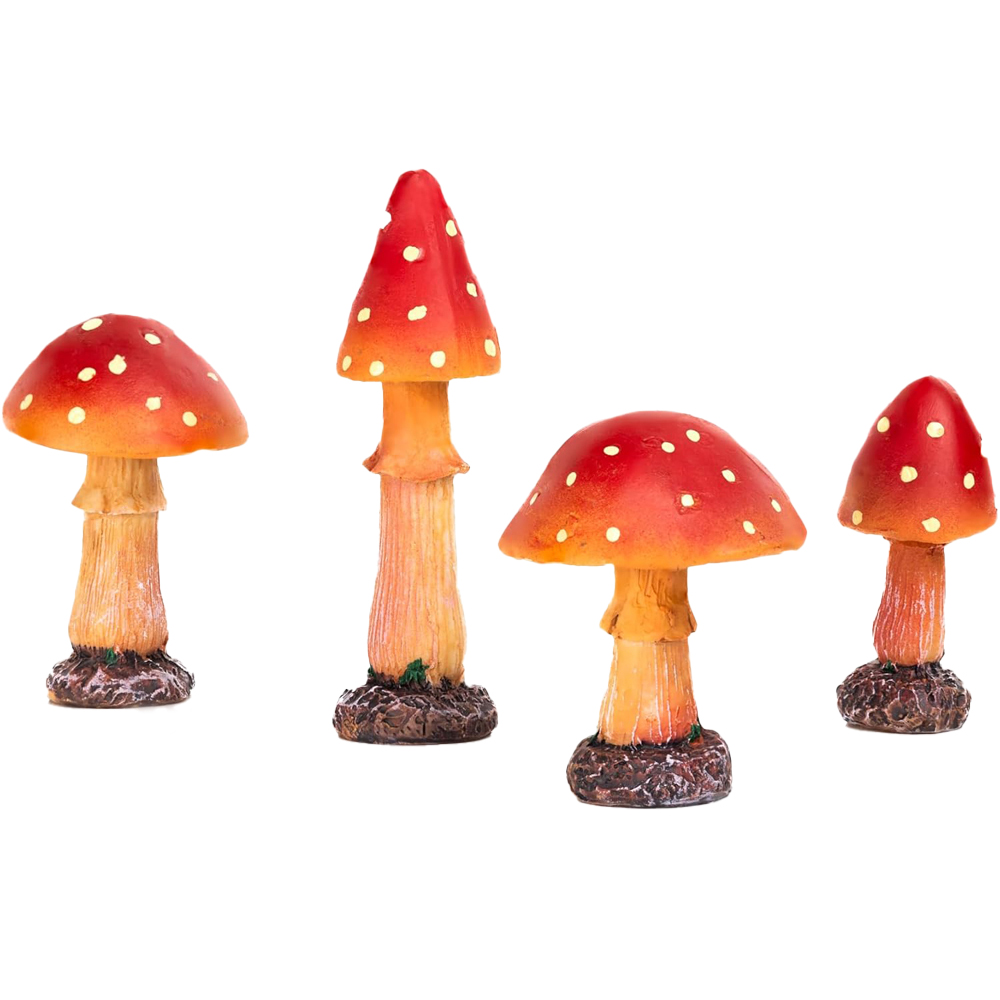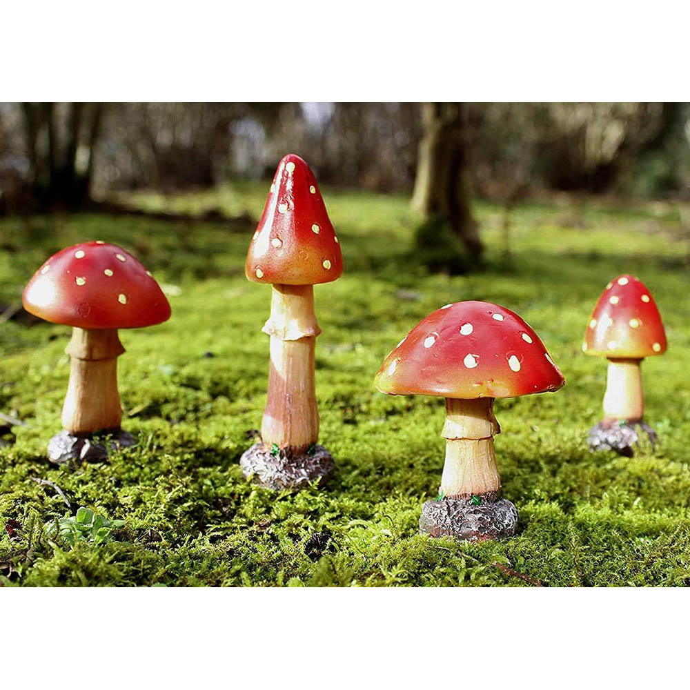 This set of 4 charming garden mushroom ornaments bring some whimsical magic to any area of your indoor or outdoor space! Place anywhere around the garden, or indoors to decorate plant pots, the options are limitless! These detailed mushrooms are made from poly resin and hand painted with intricate detail to give them a realistic look. These adorable toadstools will give you the illusion that you have real mushrooms in the garden and create an eye-catching corner anywhere they are displayed. An ideal decoration for your garden, bright, beautiful, and harmless to children and pets, an alternative to real mushrooms, these little toadstools will help attract garden visitors. They look amazing in your fairy garden or next to your garden Gnomes. Fantastic for telling the children Fairy stories and adventures. Crafted with care from Poly Resin which is waterproof and frost resistant. Dimensions The Tallest Toadstool is 12cm tall and the Shortest is 8cm. 12cm tall and the Shortest is 8cm. Colour: Red. Material: Resin
