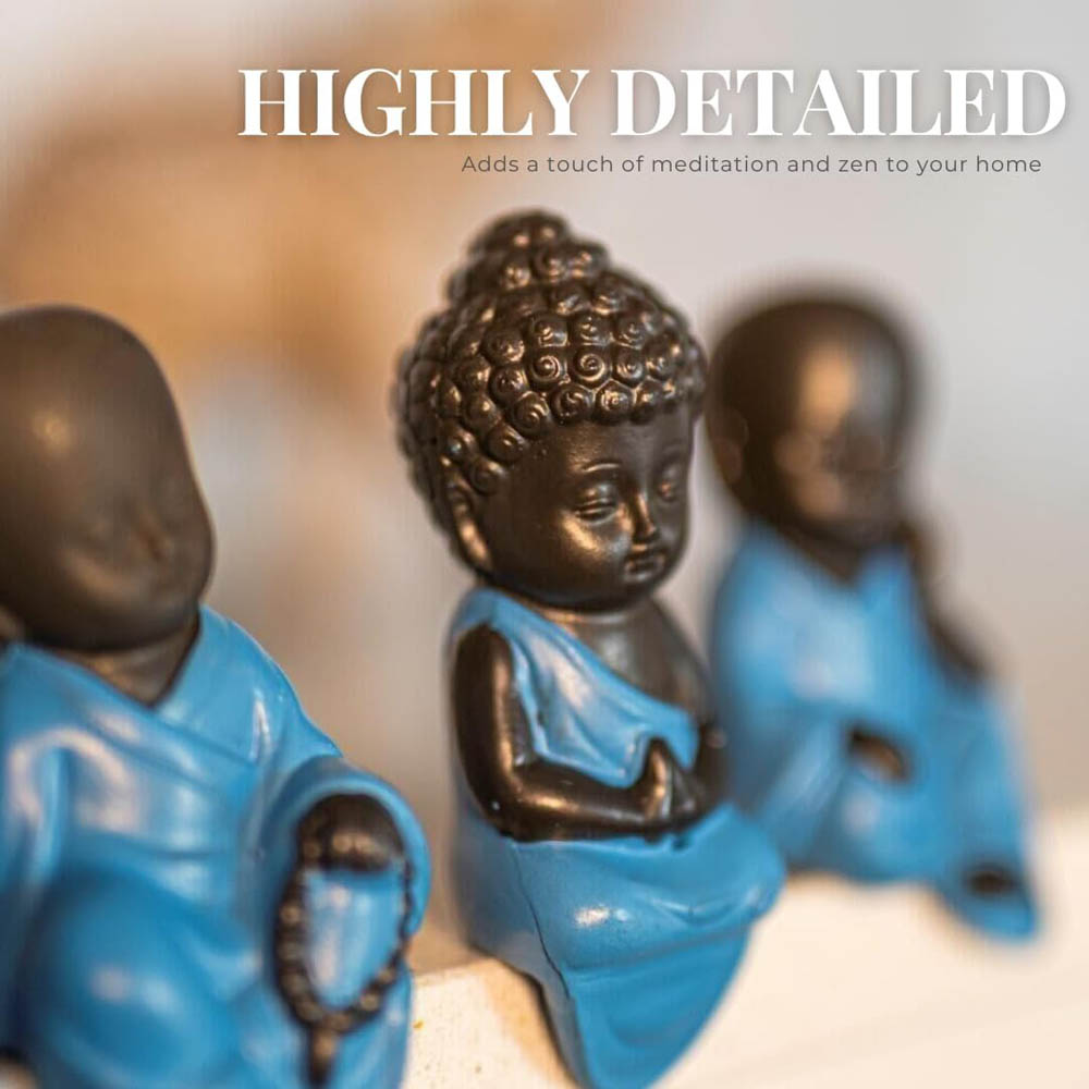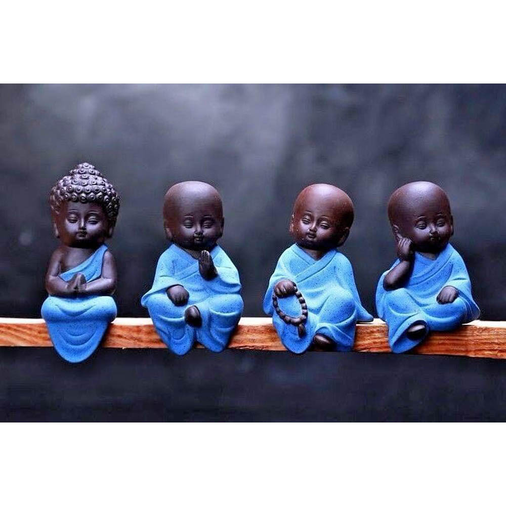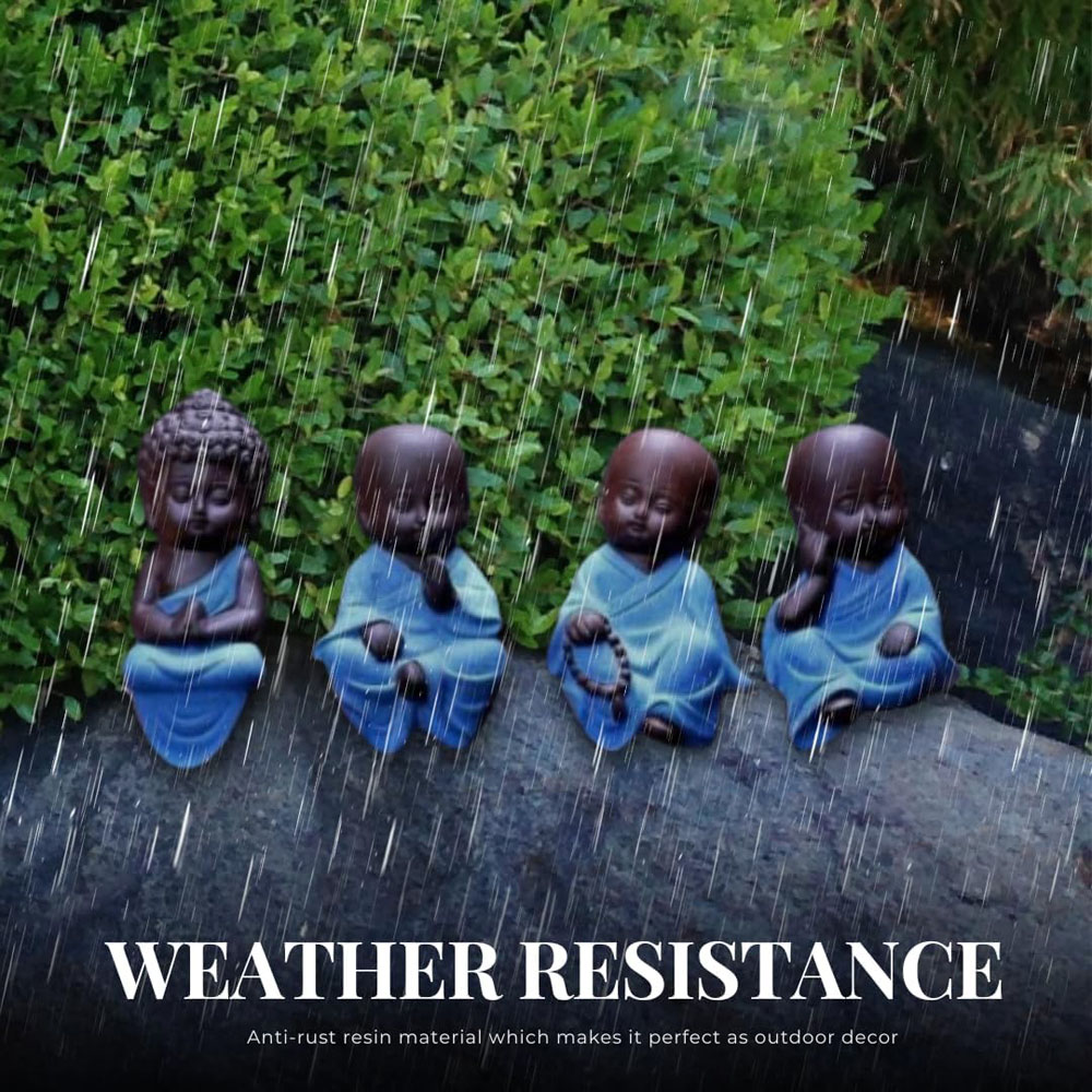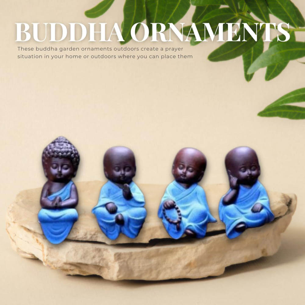 Our decorative home or garden Buddha statues mini sitting accessories are made from tough, durable resin and give you longlisting Buddha decor. They would be great for yoga or meditation classes. These Buddha ornaments for home or Buddha garden ideal for Feng Shui interior design, Meditation rooms and Yoga spaces. You can create a meditative, relaxing space in your own home and house. These feng shui ornaments for the home or the garden are fully waterproof and heatproof, withstanding all sorts of bad weather conditions. Even in rain or snow, there is no damage or loss of colour. These 4 Buddha statues uplift any indoor and outdoor space. Ideal for use as part of your interior decoration and would be eye-catching on window sills or shelves. A great gift for Zen lovers. Our home buddha garden ornaments are 8cm each (approx.); The Buddha statue indoor or outdoor look attractive and calming in all spaces, as blue ornaments they are soothing and welcoming. 8cm each (approx.).